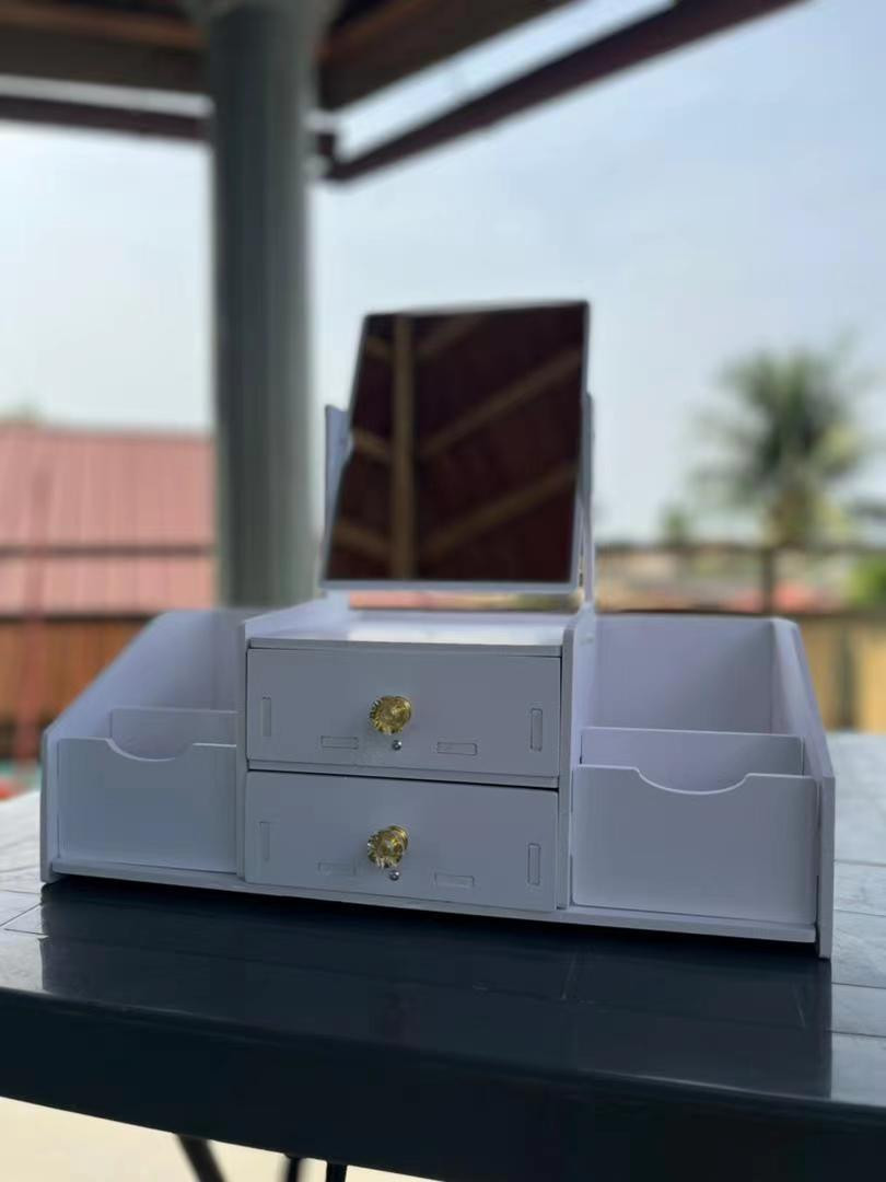 Mini coiffeuse de rangement des outils de maquillage muni d'un miroir pour femme