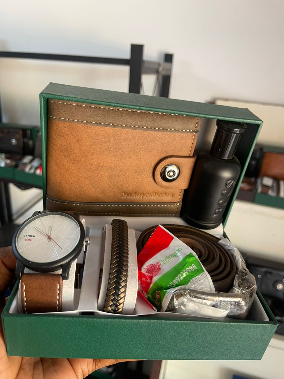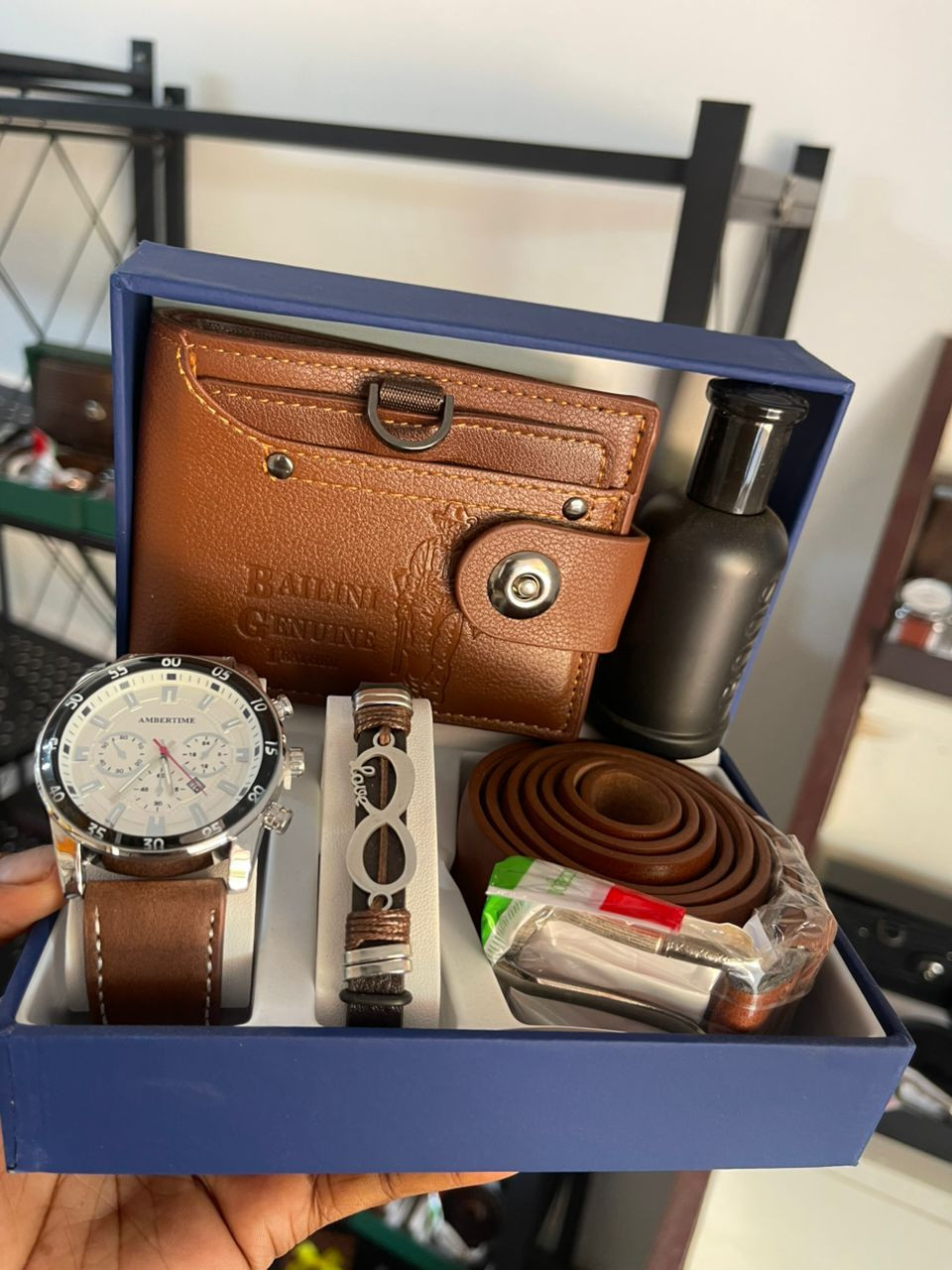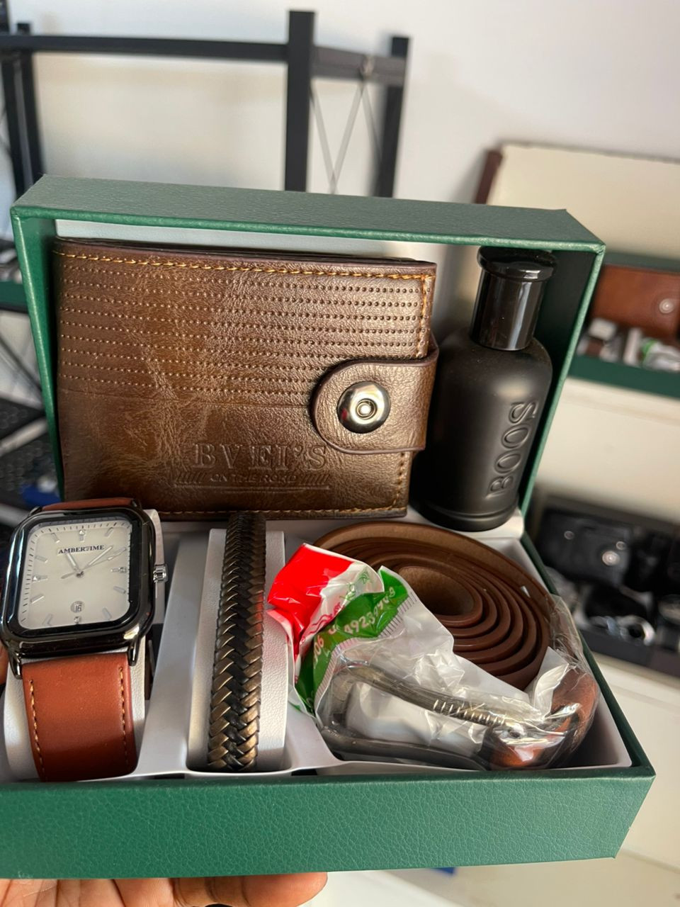 Coffret Cadeau Homme Complet – Montre, Bracelet, Ceinture, Porte-Monnaie & Parfum – Disponible au Togo