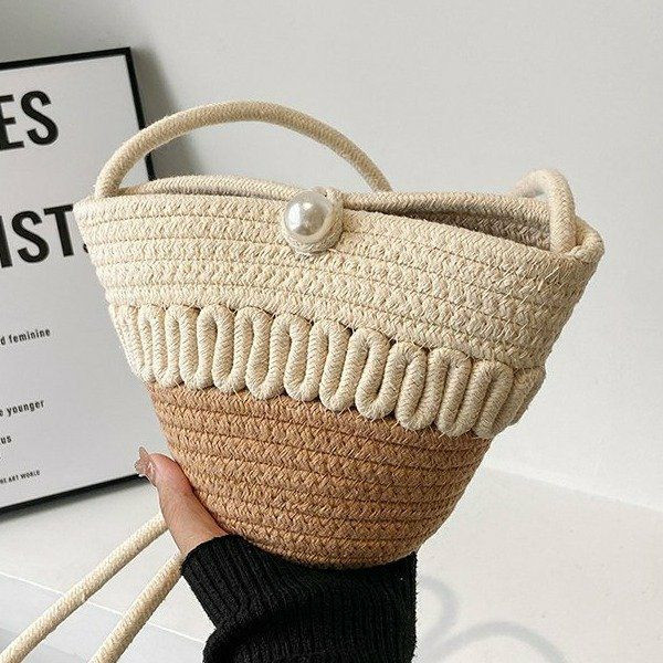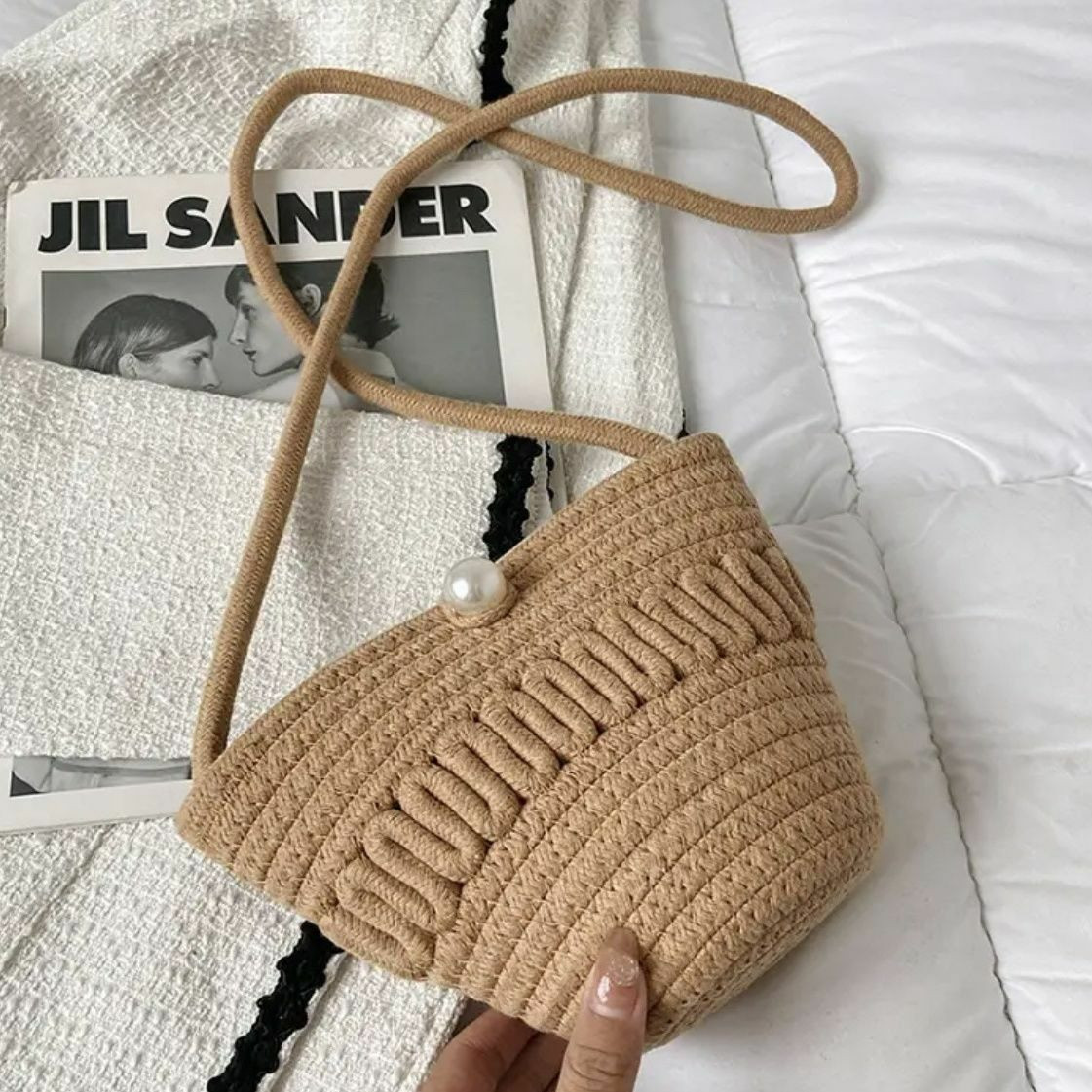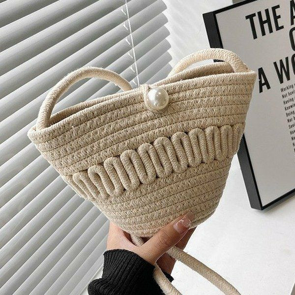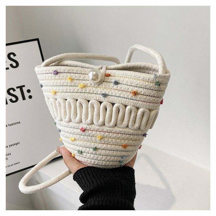 Sac à bandoulière tissé simple en paille douce pour femme, sac en fil de coton perlé, besace décontracté pour la plage