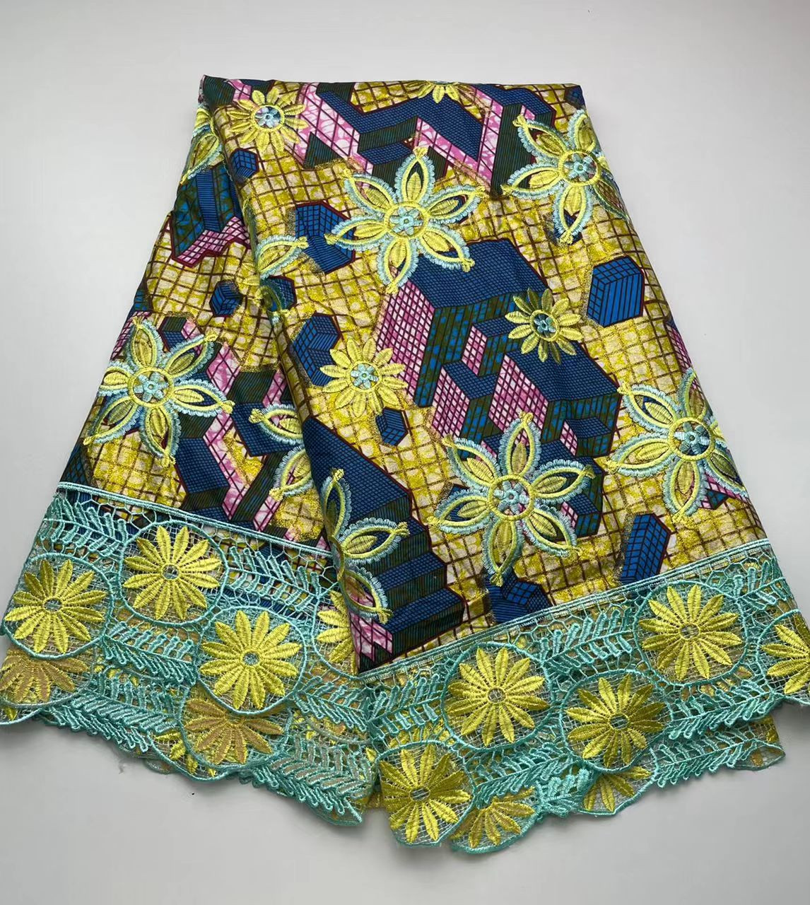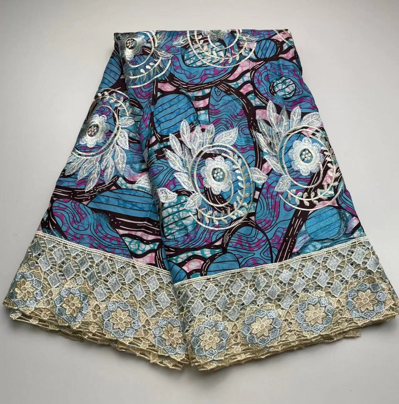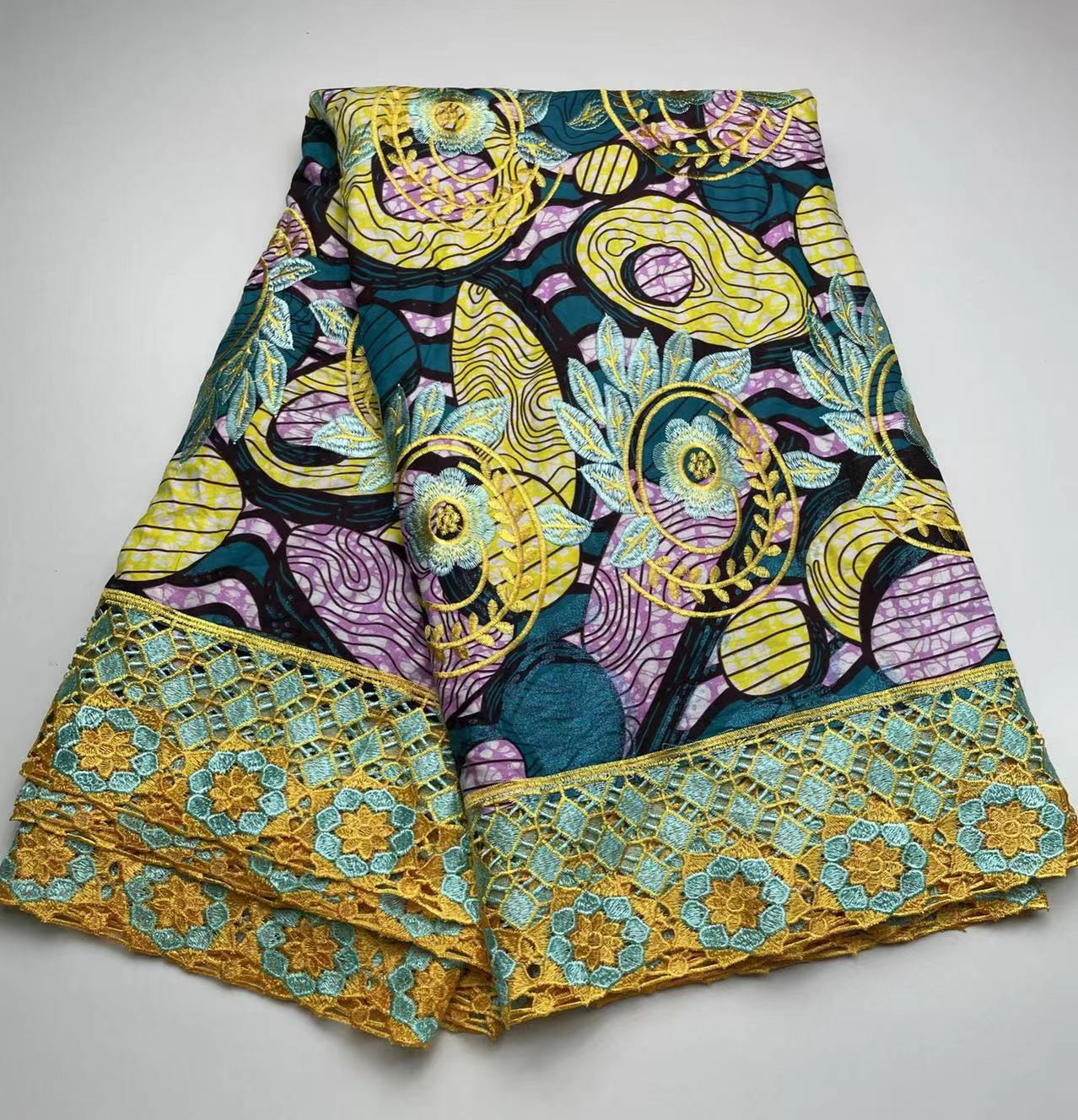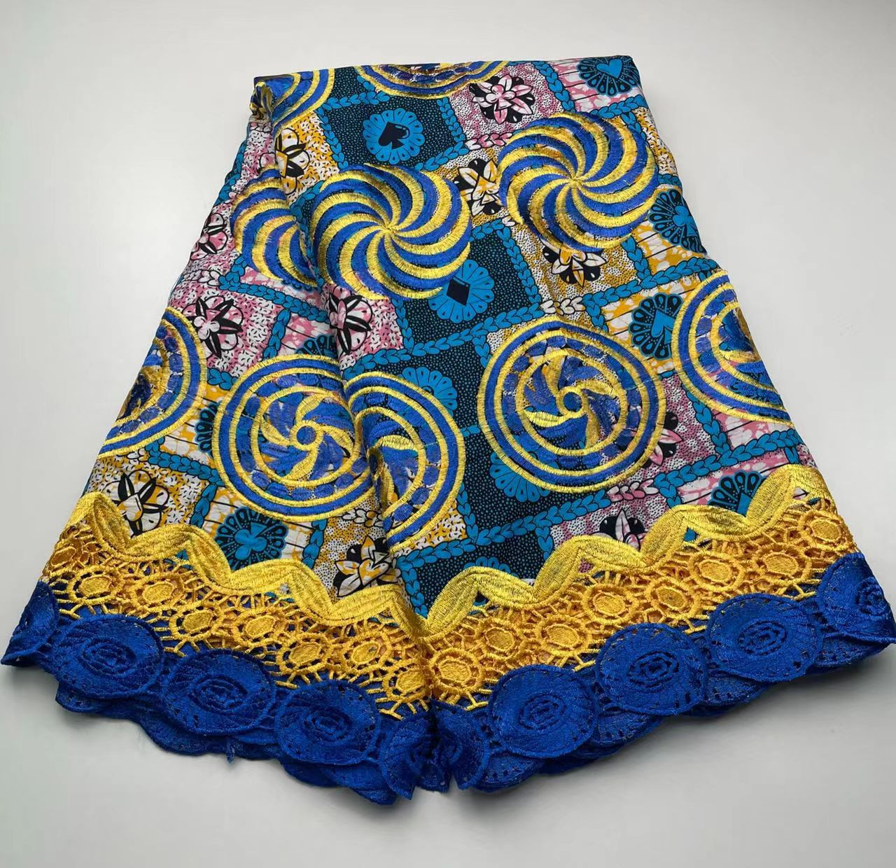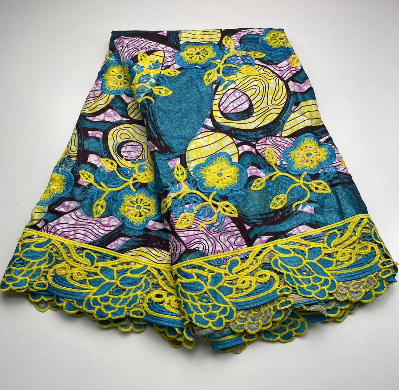 Tissu de dentelle de broderie aux bords droits de cire africaine de coton de mode par coupe de 6 yards