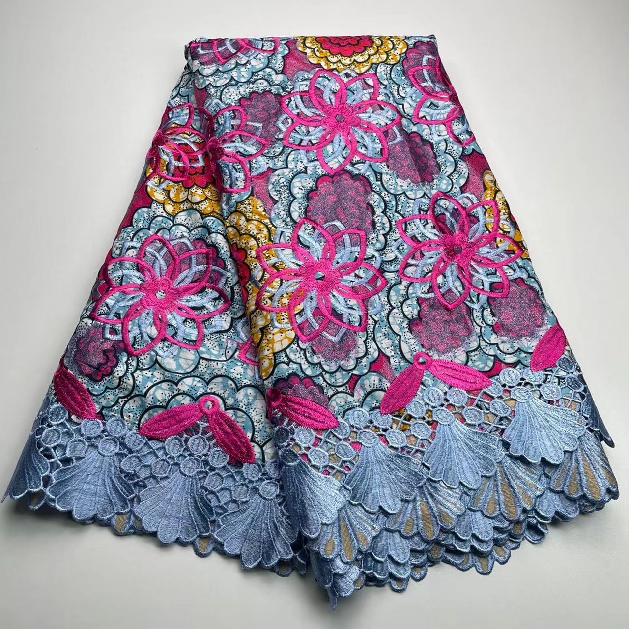 Tissu de dentelle de broderie aux bord longs de cire africaine de coton de mode par coupe de 6 yards