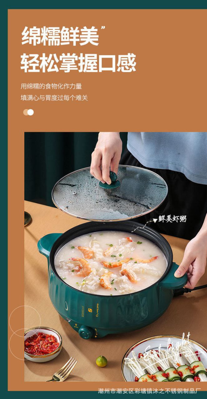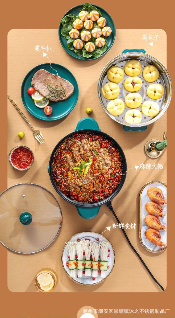 Marmite électrique pour dortoir étudiant, marmite tout-en-un pour cuire à la vapeur, frire et sauter, marmite antiadhésive, marmite électrique à emporter, cuiseur vapeur double couche