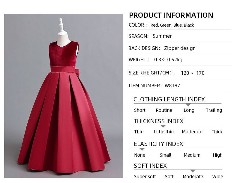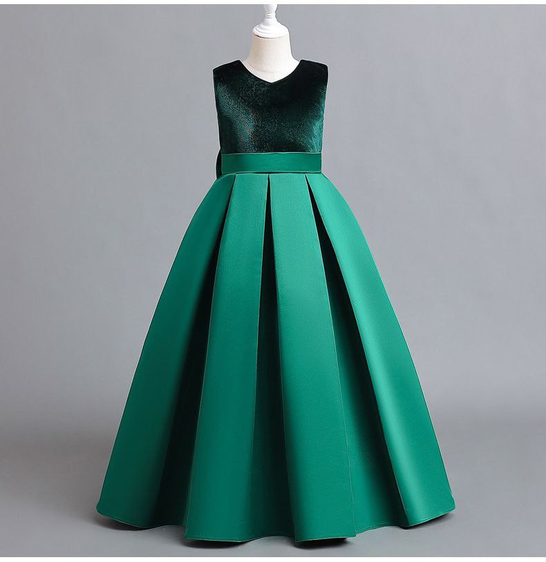 Robe performance de piano à col en V robe de princesse pour filles robe de soirée de banquet d'hôte haut de gamme