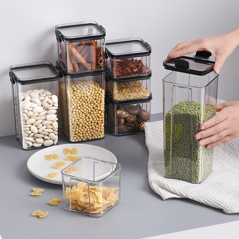 Set de 5pcs - Boîte de rangement en plastique scellée transparente carrée épaissie - boîte de stockage de fruits secs et de céréales - boîte de nourriture en plastique réservoir de stockage de thé et de céréales diverses