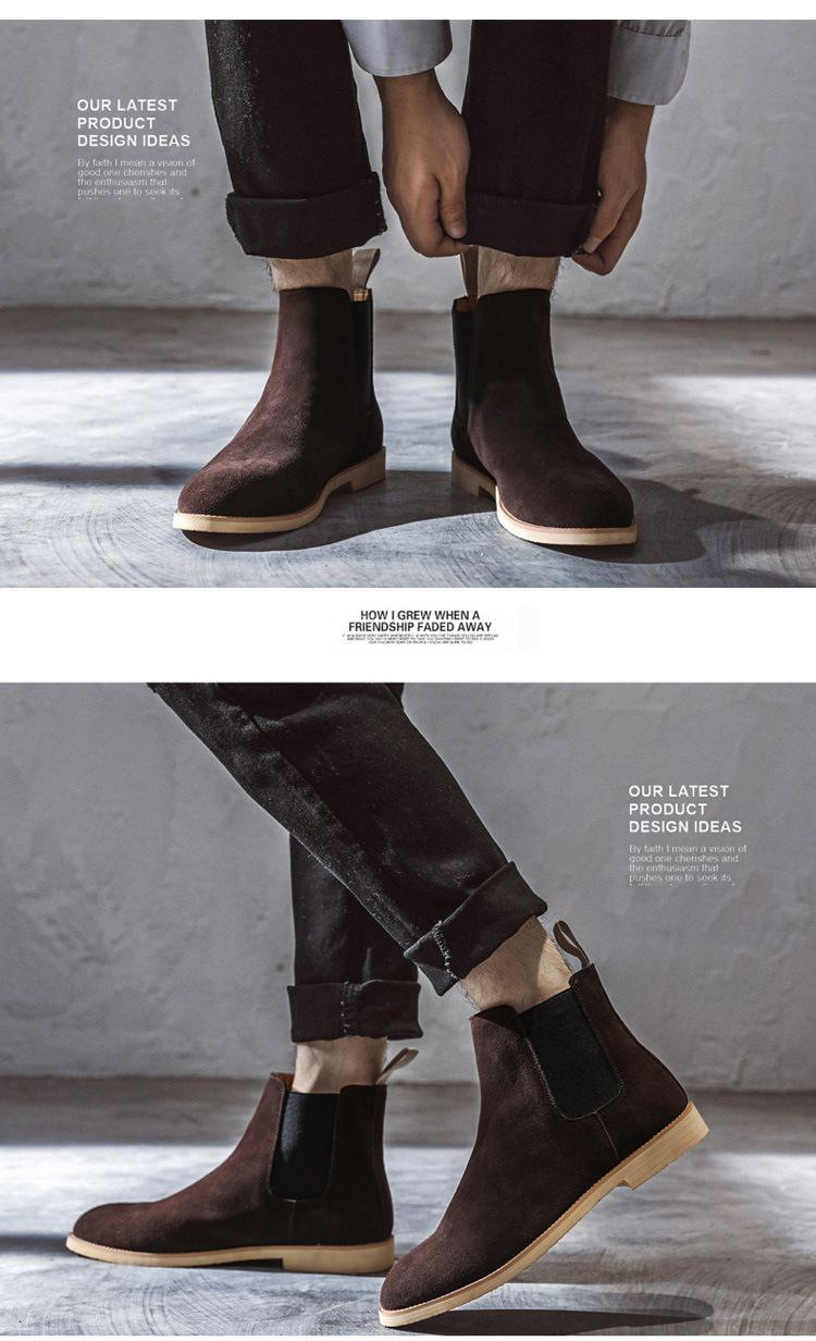 Bottes Chelsea à bout pointu, bottes Martin pour hommes, bottes en cuir véritable de style britannique de très grande taille prête à l'emploi