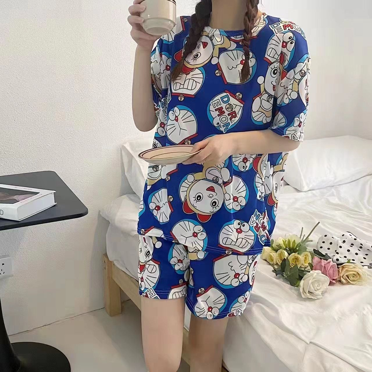 Pyjama pour femme, nouveau short d'été à manches courtes pour femmes mignon décontracté grande taille ensemble de vêtements de maison