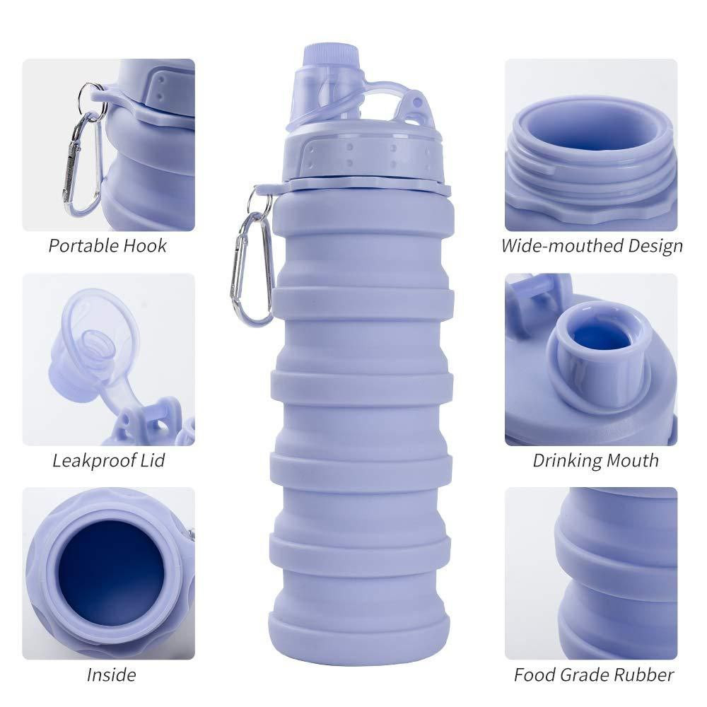 Tasse d'eau rétractable pliable en Silicone sports de plein air voyage bouteille d'eau portable bouteille d'eau compressible de qualité alimentaire 500ml