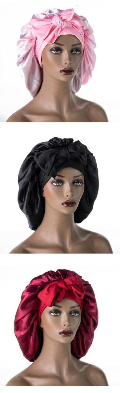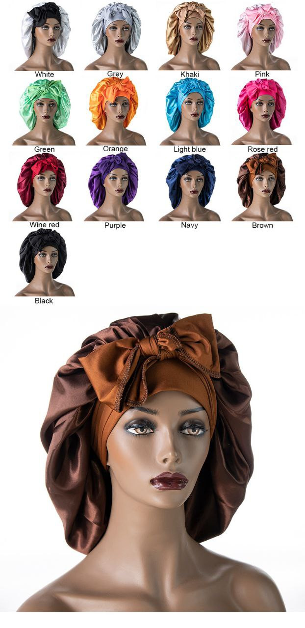 Le nouveau bonnet de douche extra-large à large bord et à longue queue le plus vendu d'Amazon, un bonnet rond en ruban, un grand bonnet de nuit en satin pour adulte