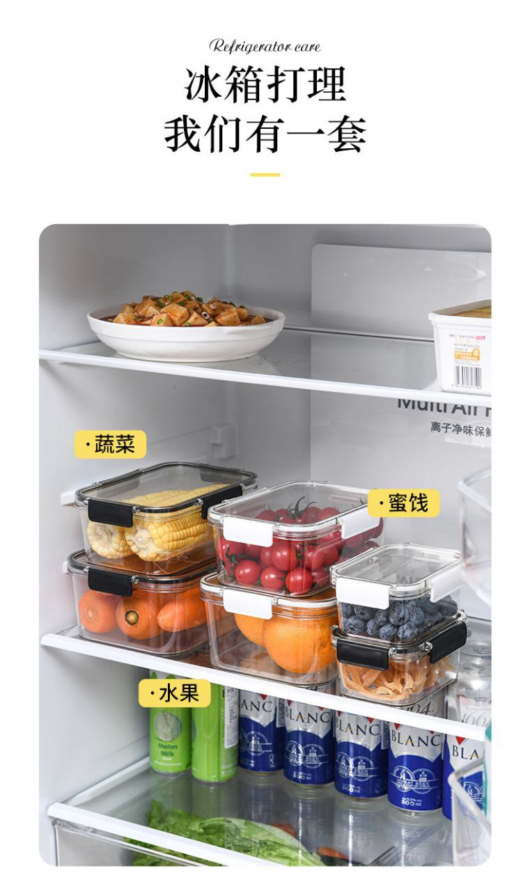 Bac à légumes en plastique de qualité alimentaire pour réfrigérateur grande capacité boîte à lunch rectangulaire pour fruits stockage boîte scellée transparente