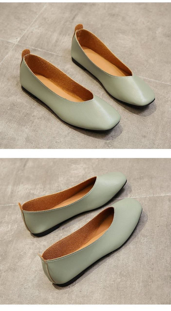 Chaussures simples pour femmes, nouveau style chaussures en cuir souple chaussures plates rétro pour femmes bout carré à bouche peu profonde