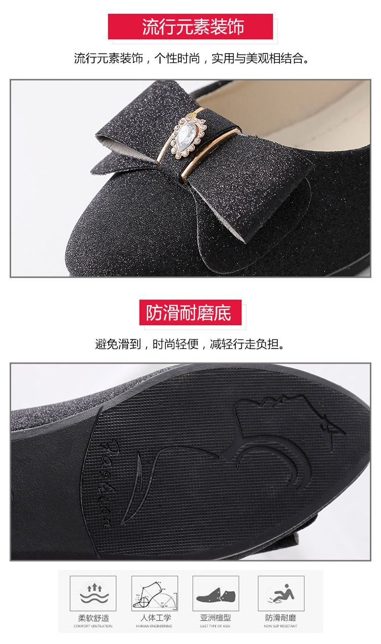 Nouveau style femmes style coréen à talons bas bout rond chaussures de haricots peu profonds chaussures pour femmes en strass givré