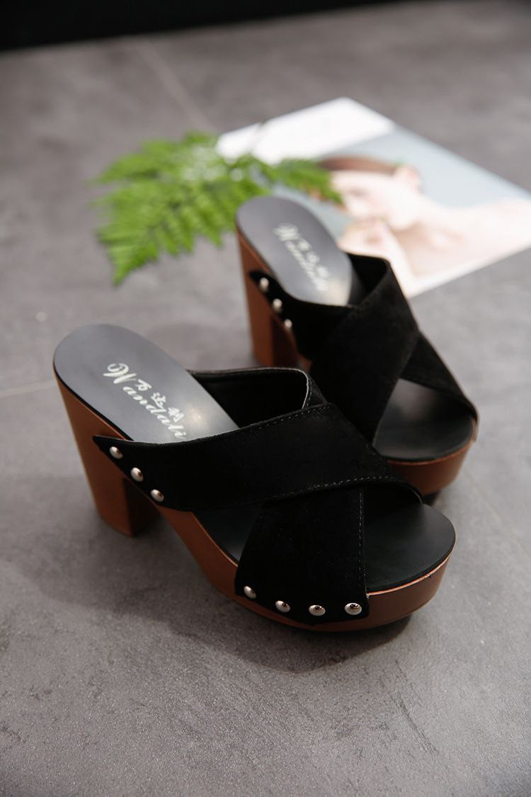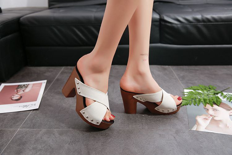 nouveau style bouche de poisson rivet sangle croisée talon haut talon épais fond épais sandales romaines pour femmes