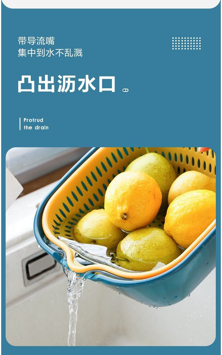 Panier de vidange d'évier de légumes à double couche, panier de vidange de lavage de fruits de cuisine, artefact de fuite, panier de lavage de légumes Chuyi en six pièces