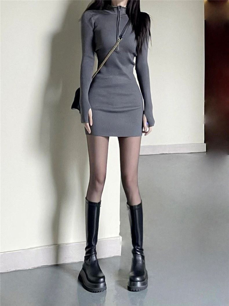 nouvelle coupe de printemps jupe grise moulante aux hanches robe filetée