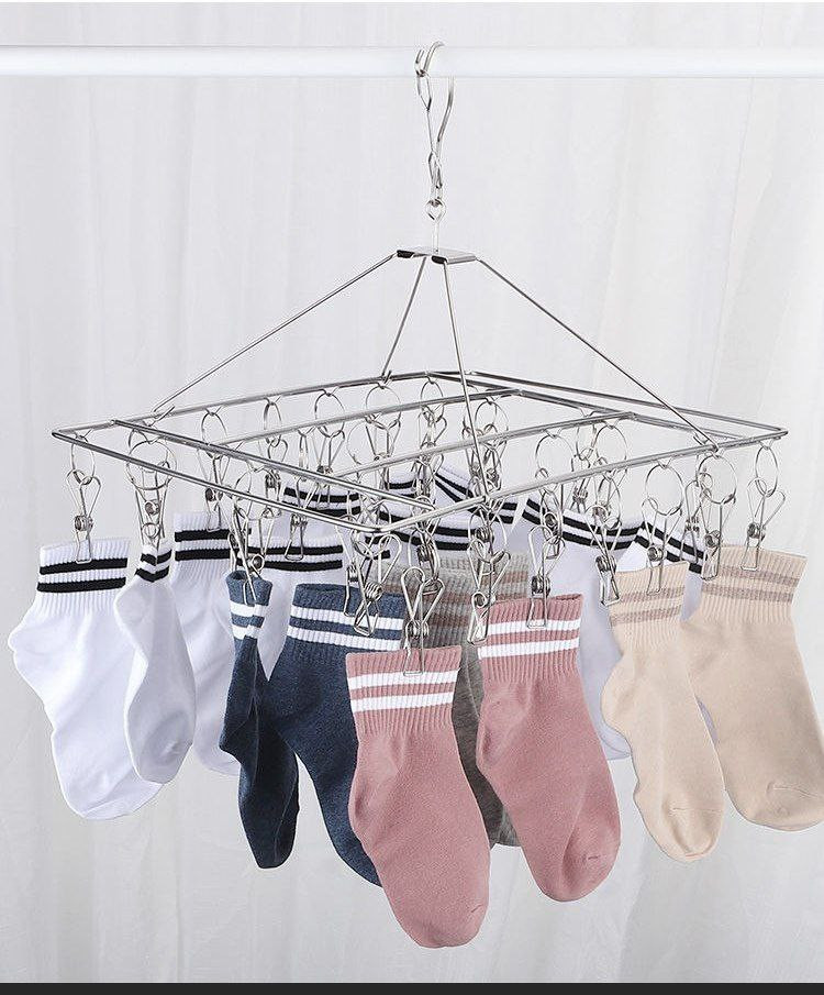 Étendoir à linge épais avec plusieurs clips, chaussettes de séchage de vêtements en acier inoxydable, pinces à chaussettes coupe-vent multifonctionnelles, crochet d'artefact pour cintre pour enfants