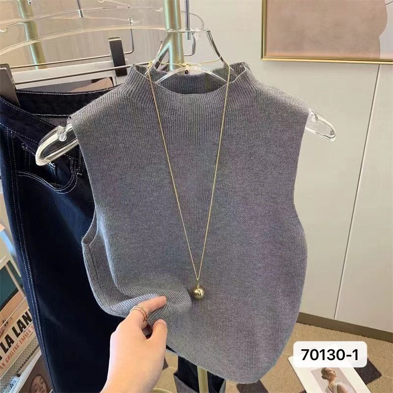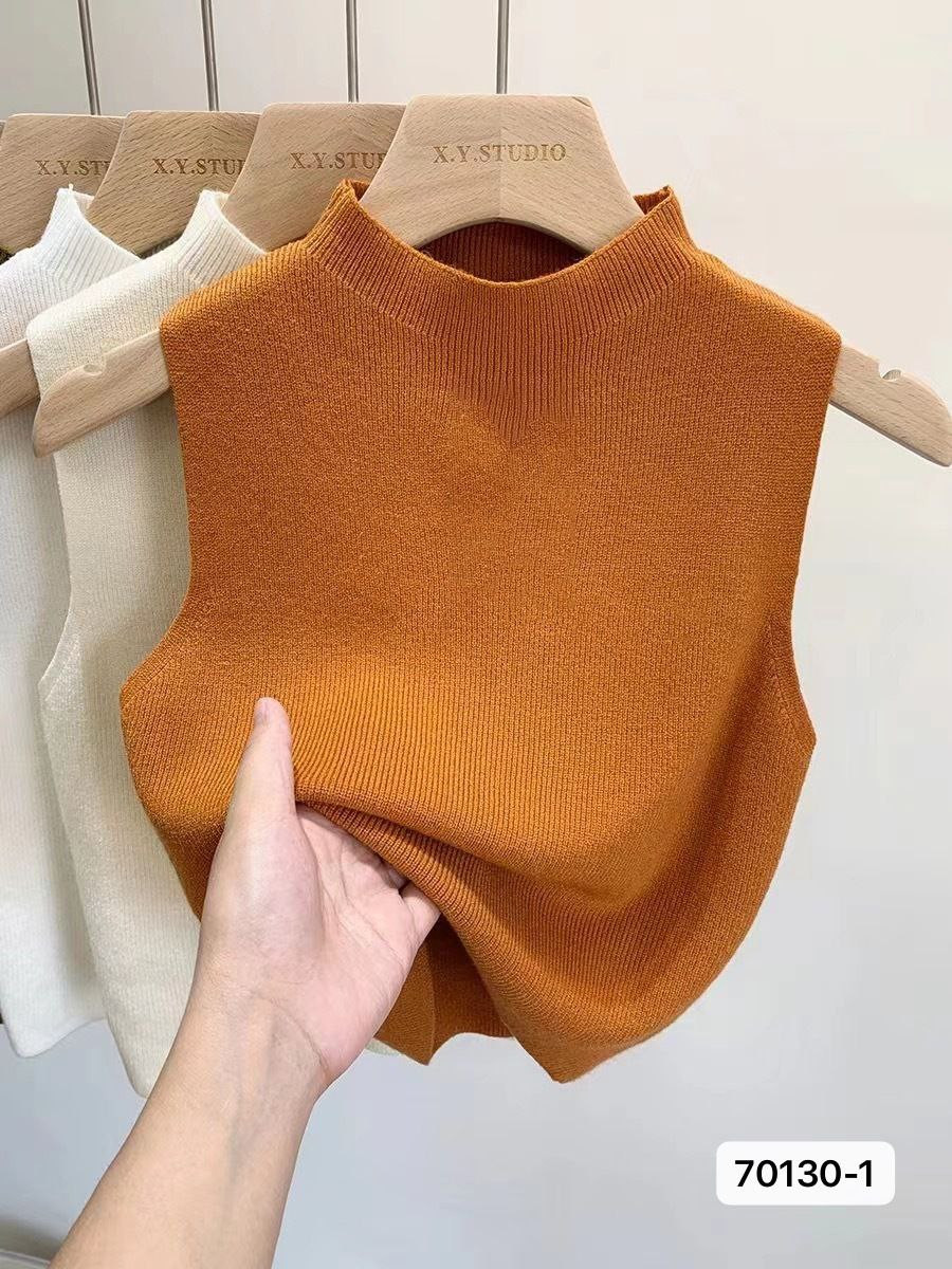 Style d'été pull tricoté chemise à manches longues camisole à col roulé haut court sans manches mode féminine