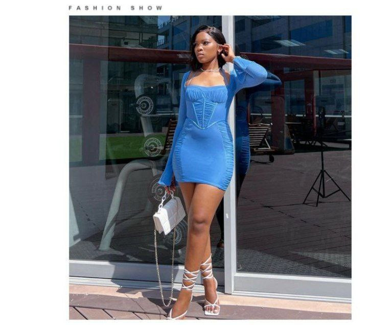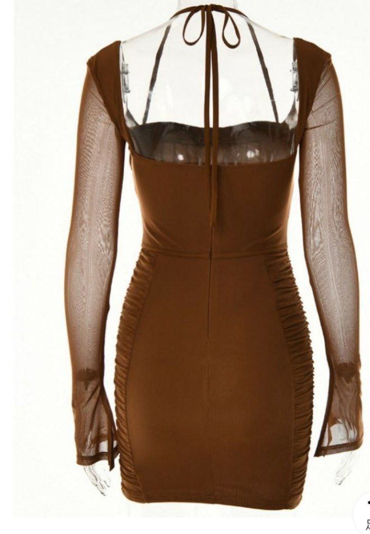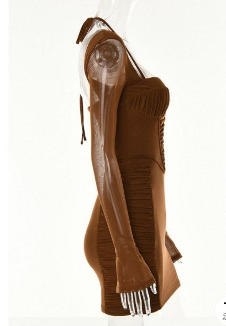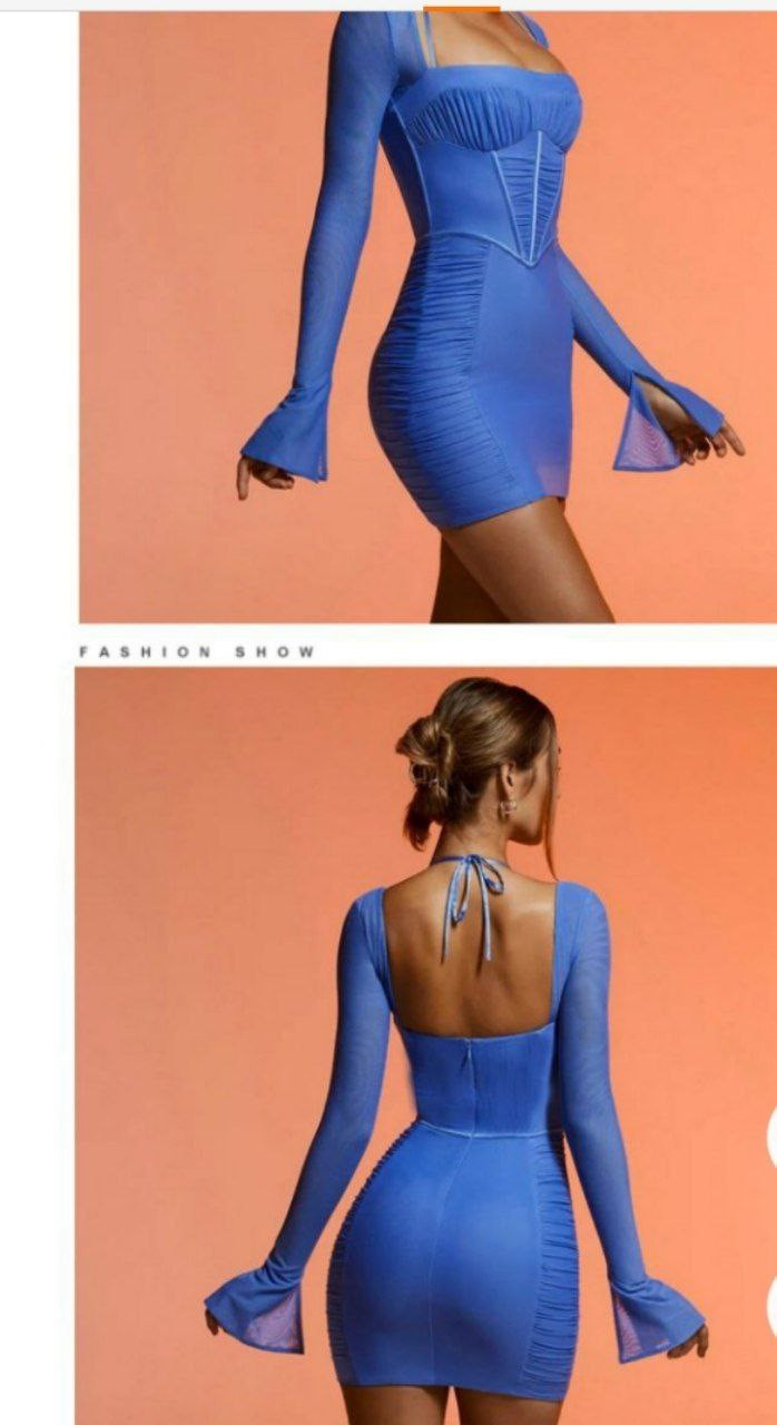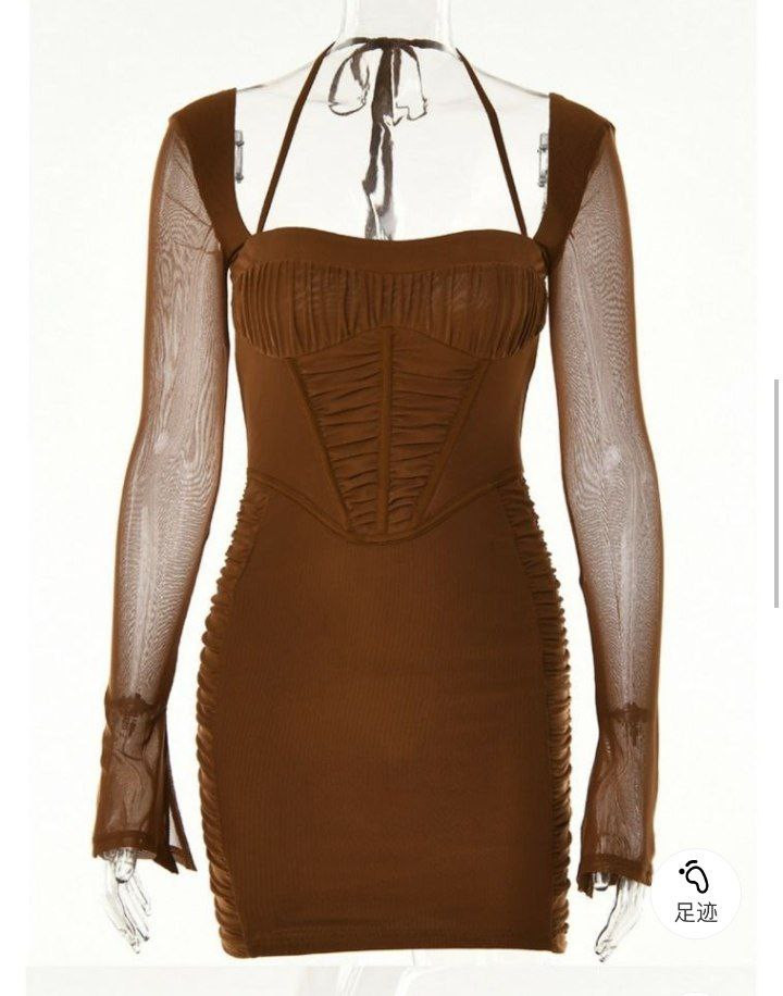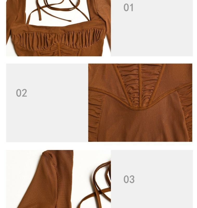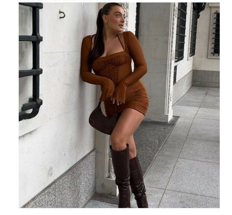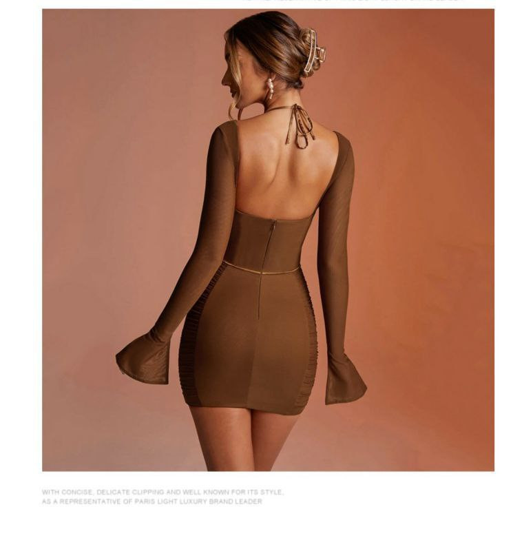 robe slim, col carré, col suspendu, manches longues élastiques, jupe de hanche de sac à dos épissé,