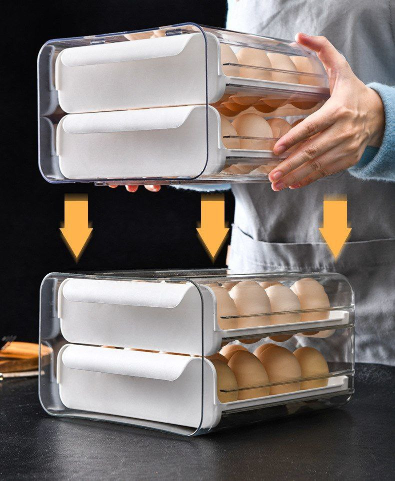 Boîte à double tiroir de conservation des œufs rangement cuisine conservation des œufs 32  transparente