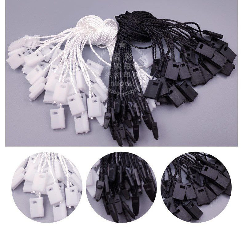 Étiquette de vêtements corde bagages prise unique corde en polyester suspendus grain blanc carré lanière fil boucle universelle suspendus grains suspendus corde en stock 1000pcs in pack