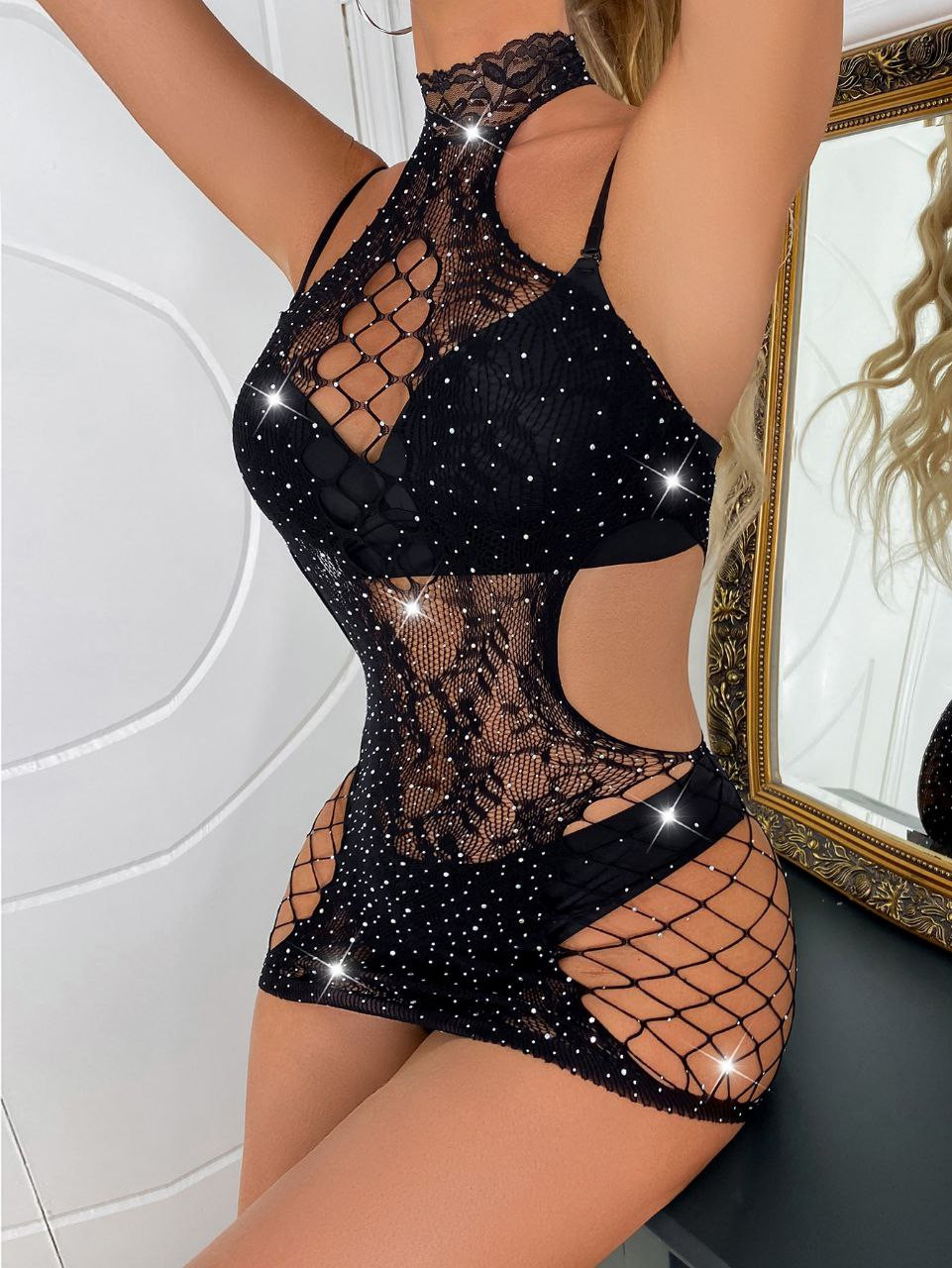 Lingerie de tentation sexy diamant chaud dentelle jarretelle pour femmes diamant brillant gratuit résille de fesses serrées