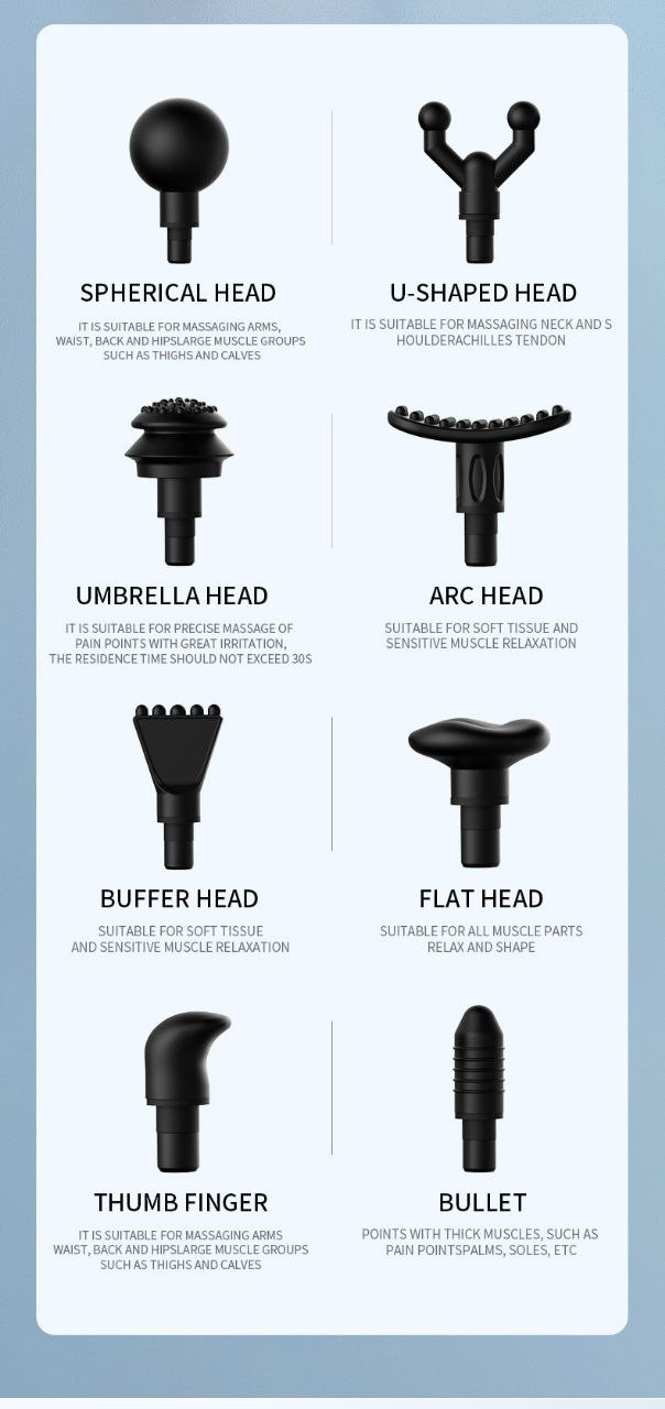 Mini pistolet électrique à huit têtes pour fascia, pistolet de massage de la taille, relaxation musculaire, masseur vibrant vertèbre cervicale