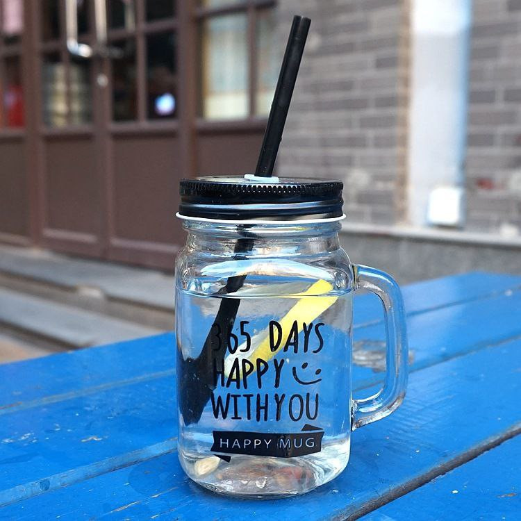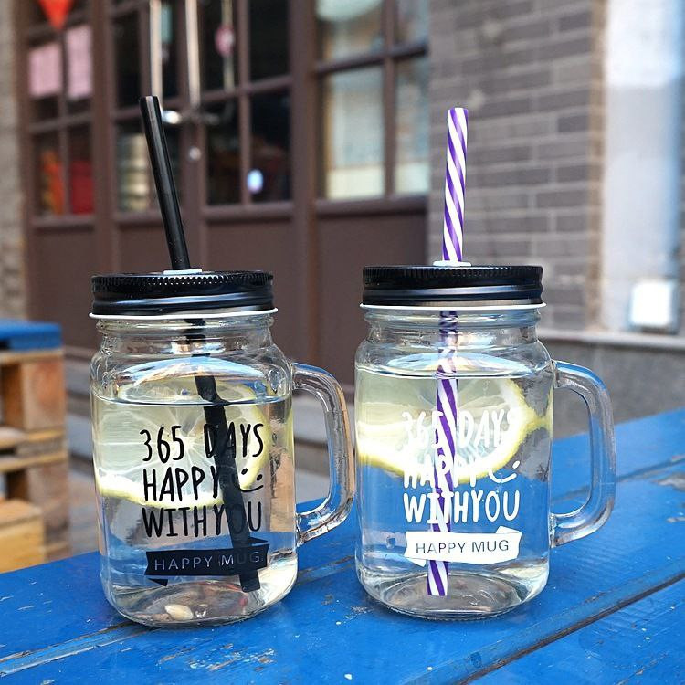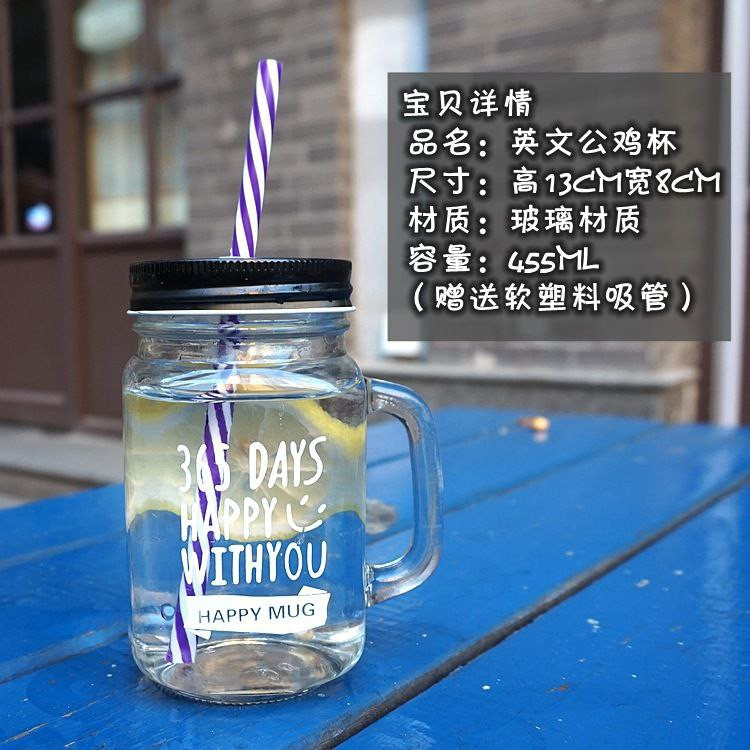 Tasse d'eau créative en verre Mason de 480ML avec poignée, boisson froide, lait, thé, jus de fruit, tasse de poulet avec couvercle