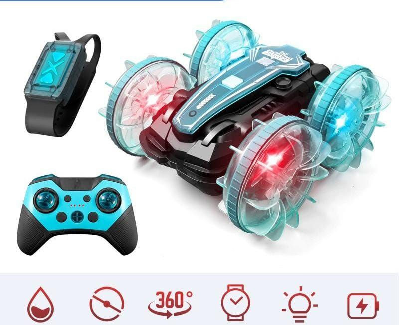 Voiture de cascade amphibie éclairée télécommande étanche requin voiture télécommandée double face conduite capteur de geste jouet pour enfants