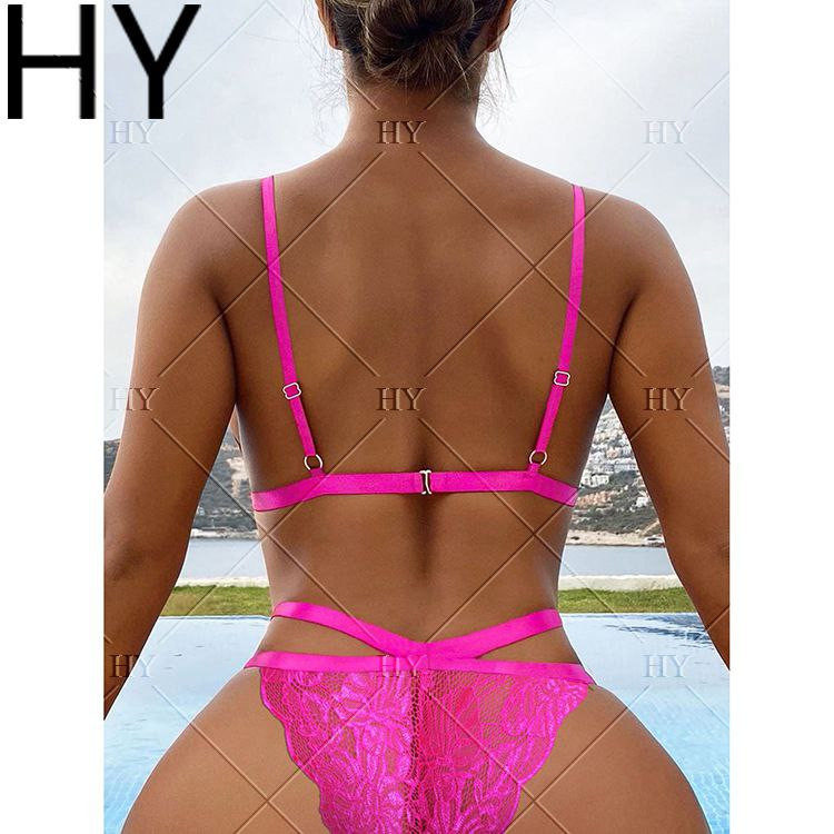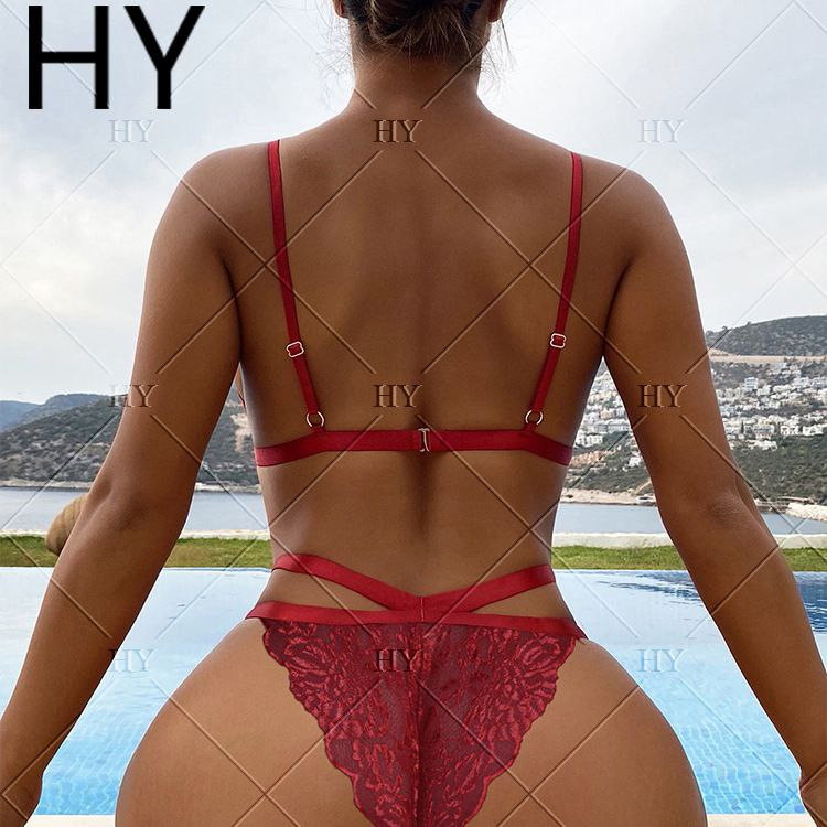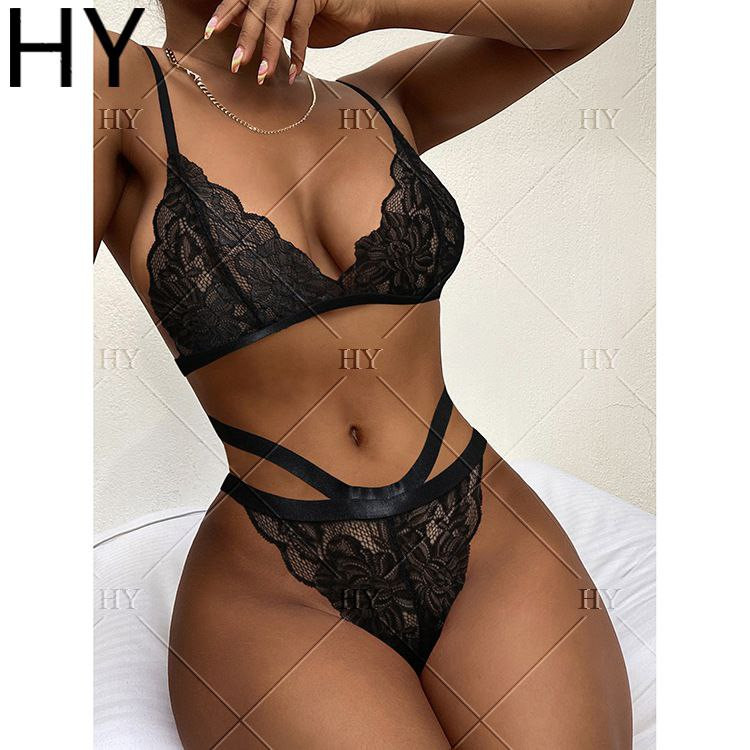 sous-vêtements sexy transparents creux en dentelle blanche costume à trois points sous-vêtements de tentation fendus