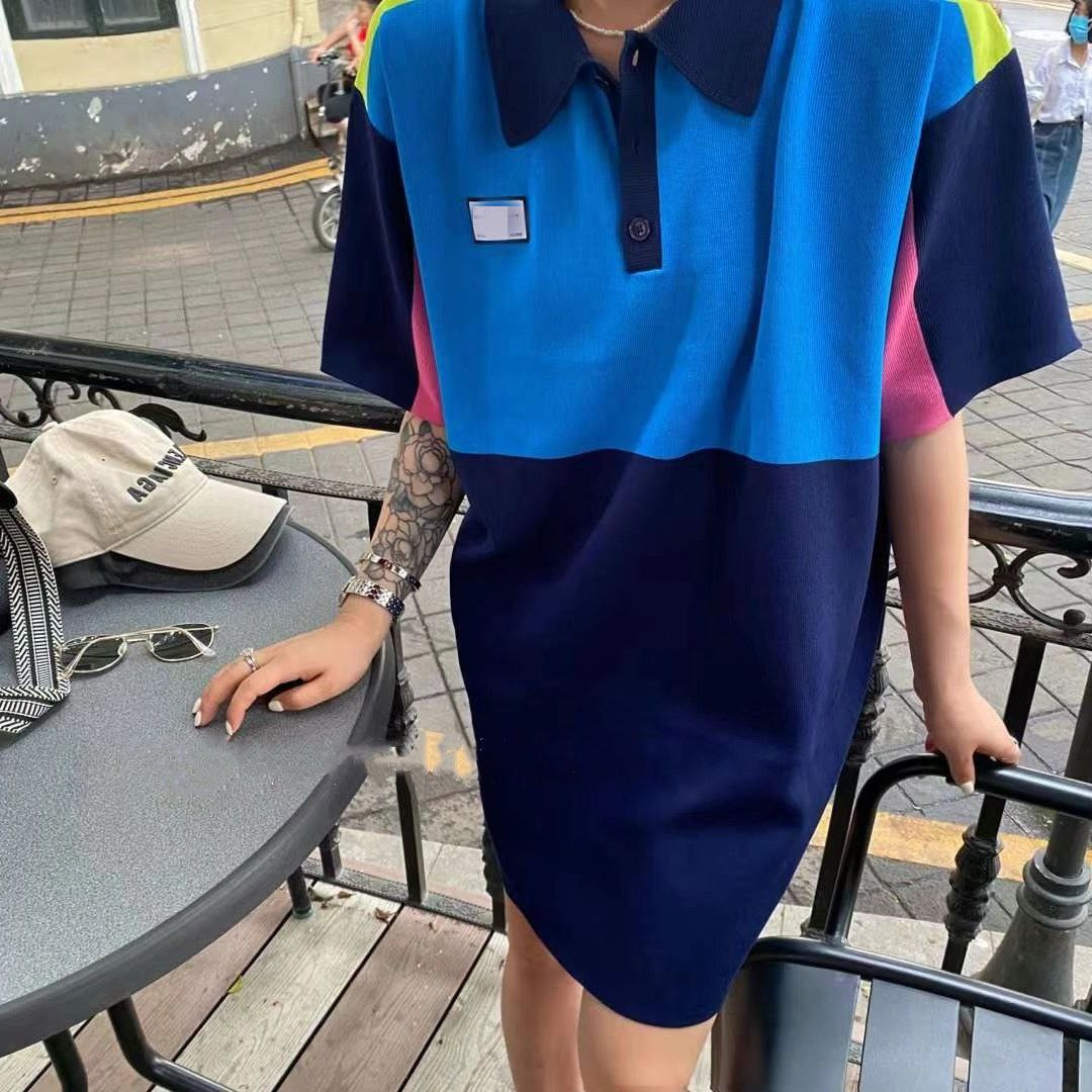 Col POLO ample de style coréen, robe tricotée mi-longue de couleur contrastée à la mode pour femmes, nouvelle saison