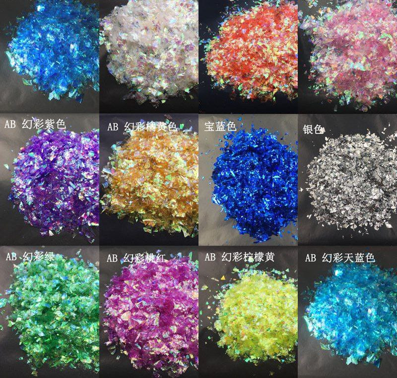 Papier bonbon en papier coquille 500 g emballé avec des autocollants en verre colorés, des fleurs écrasées colorées et des paillettes décoratives pour manucure.