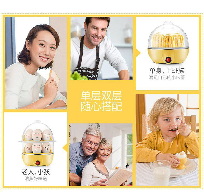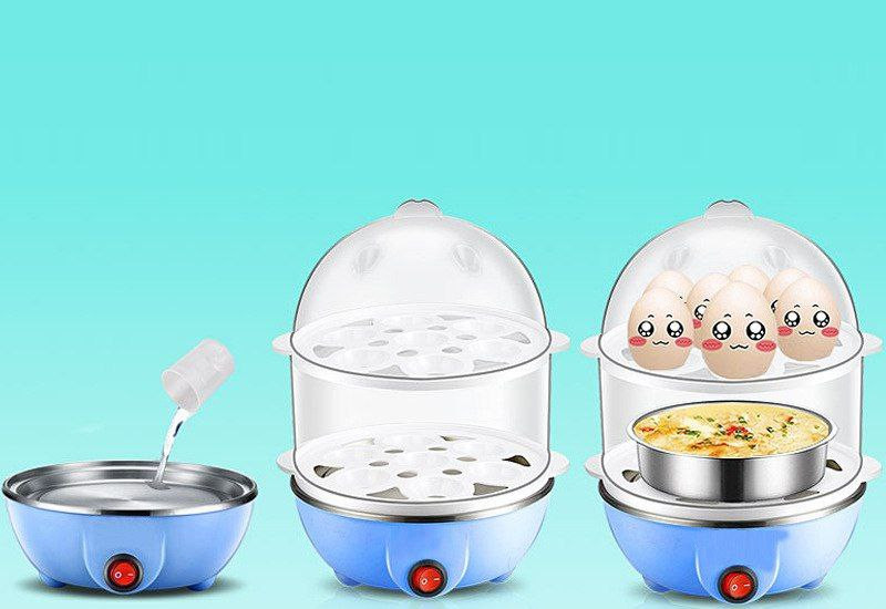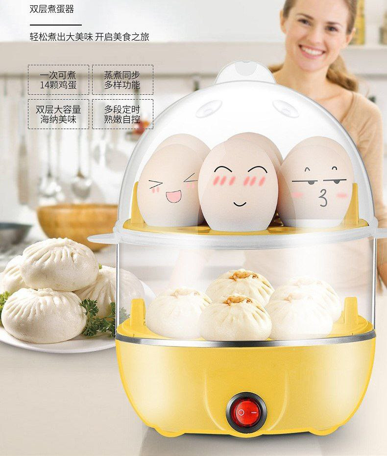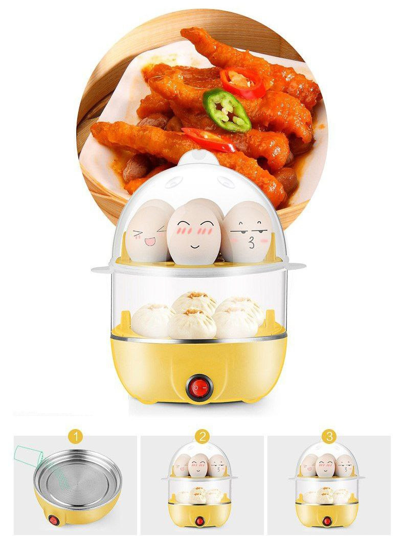 Cuiseur à œufs multifonctionnel double couche, chaudière à œufs domestique, artefact, œufs cuits à la vapeur, mini machine à petit-déjeuner en acier inoxydable