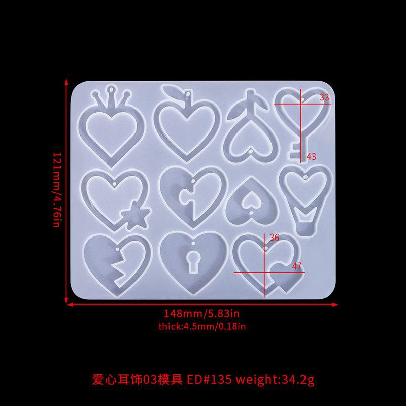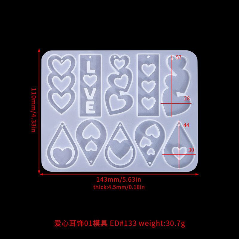 Moule en silicone divers pendentif en forme de cœur boucles d'oreilles bijoux