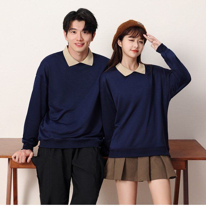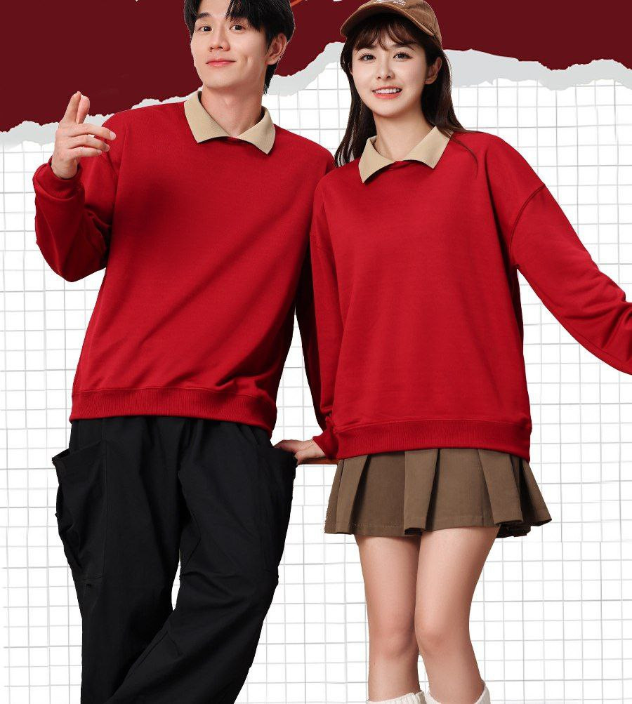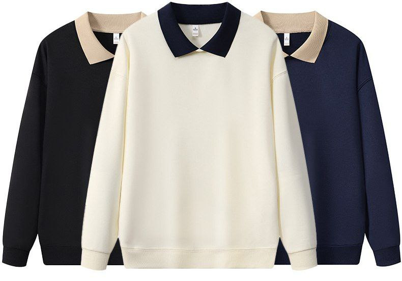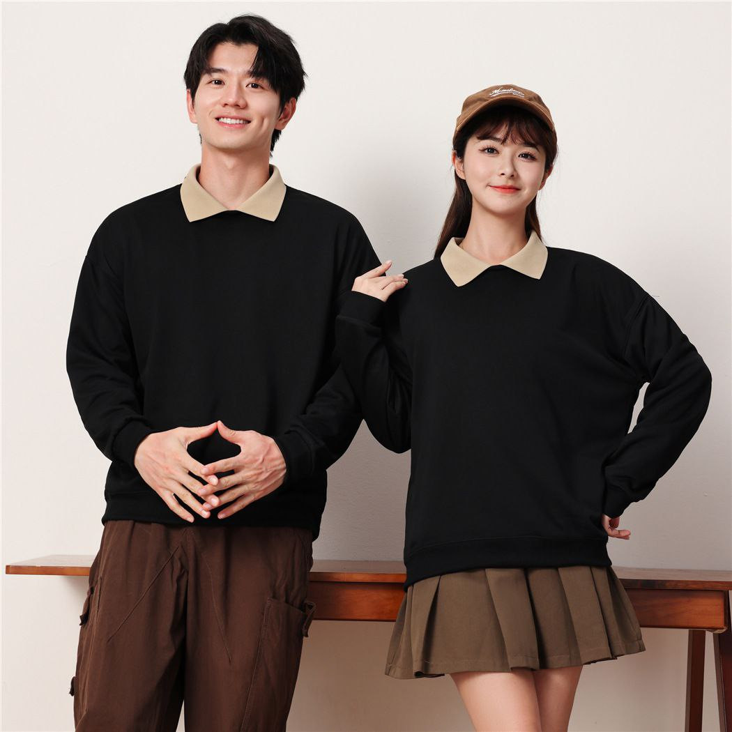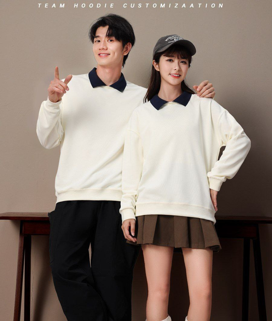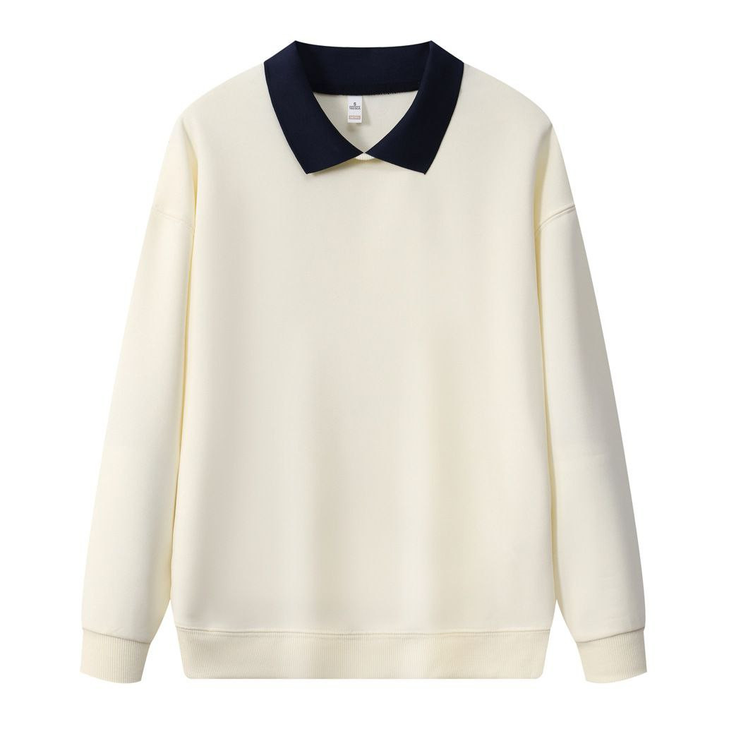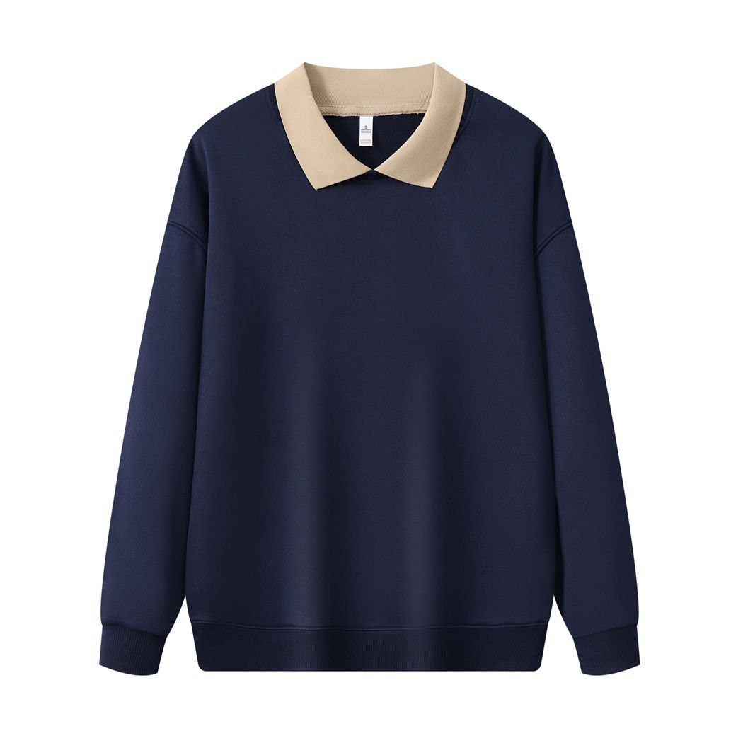 Sweat-shirt à grand revers en éponge imitation coton, couleur assortie, POLO ample à épaules dénudées, pull d'uniforme de classe d'étudiant, LOGO personnalisé