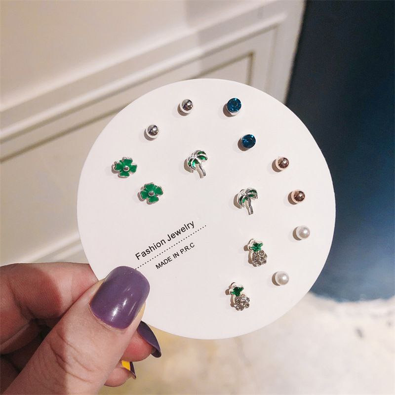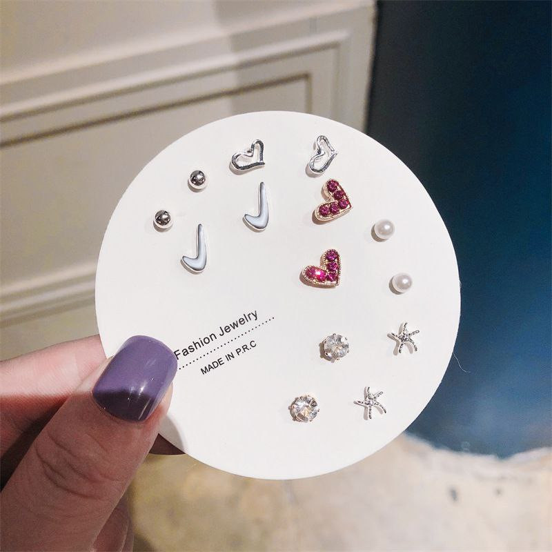 Ensemble de boucles d'oreilles mignon et compact, 7 paires de boucles d'oreilles combinées, boucles d'oreilles japonaises et coréennes simples pour femmes