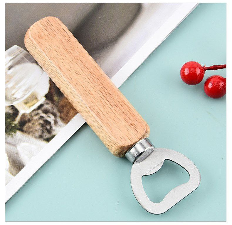 Ouvre-bouteille de bière avec manche en bois épais, multifonctionnel en bois massif, aimant pour réfrigérateur