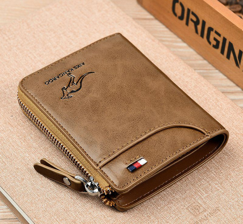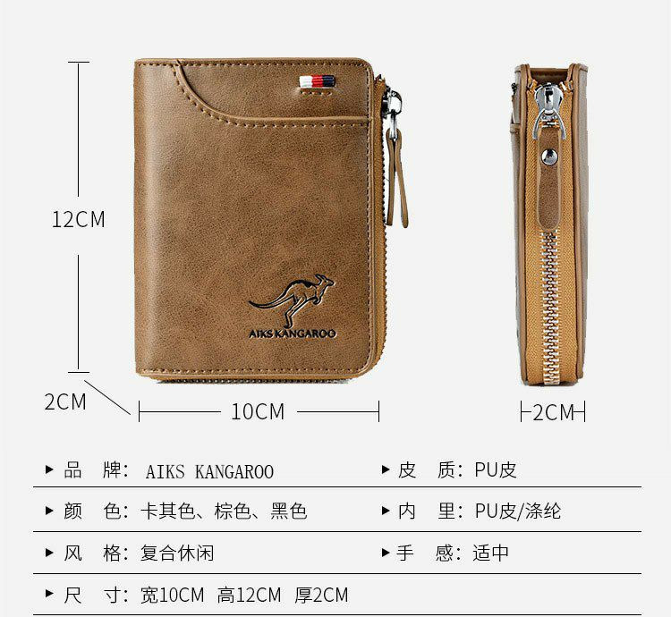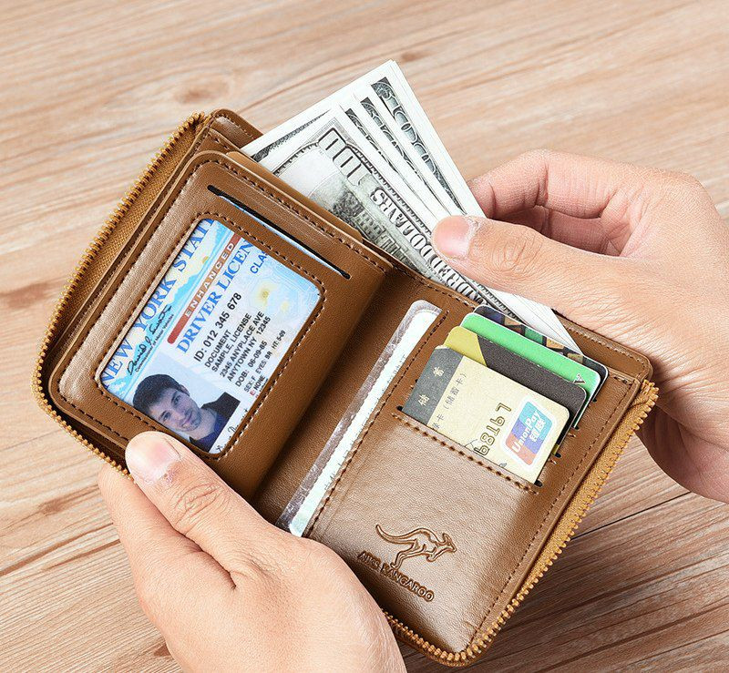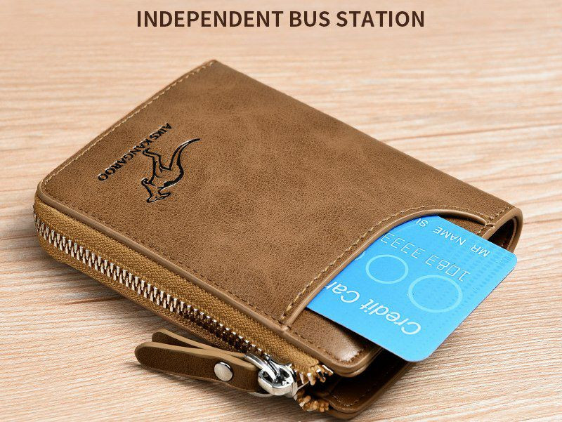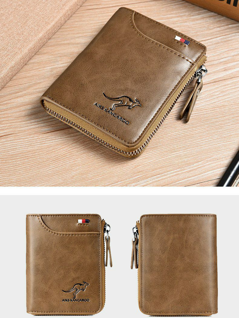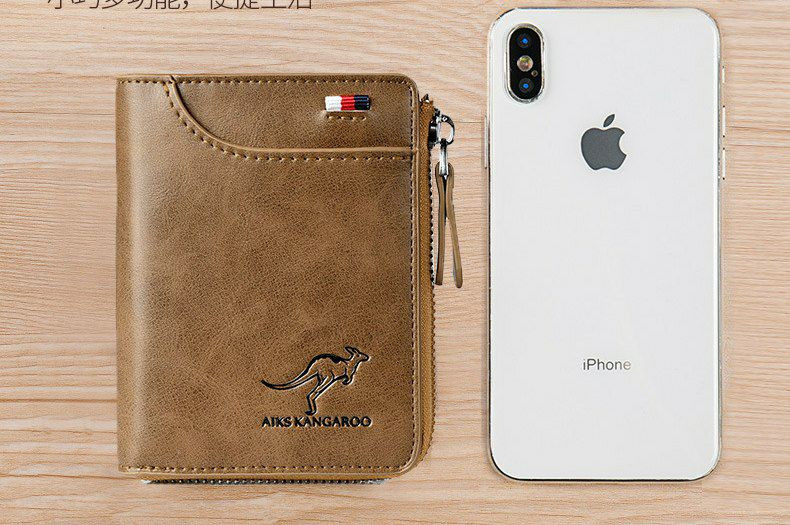 Portefeuille antimagnétique en cuir pour hommes avec fermeture éclair, porte cartes, a deux volets avec pince a billets, Carte anti-Theft