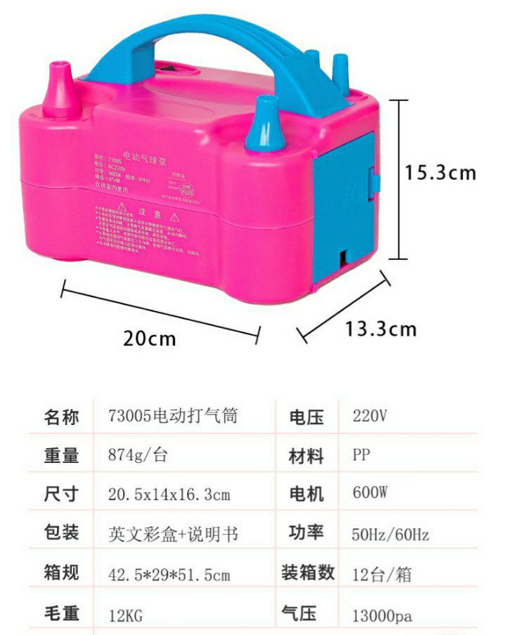 73005 Pompe a ballons électrique a Air portable a double buse pour gonfler des ballons pour décoration de fête. Pompe gonflable électrique Classic Pompe à double trous Pompe à air 220V