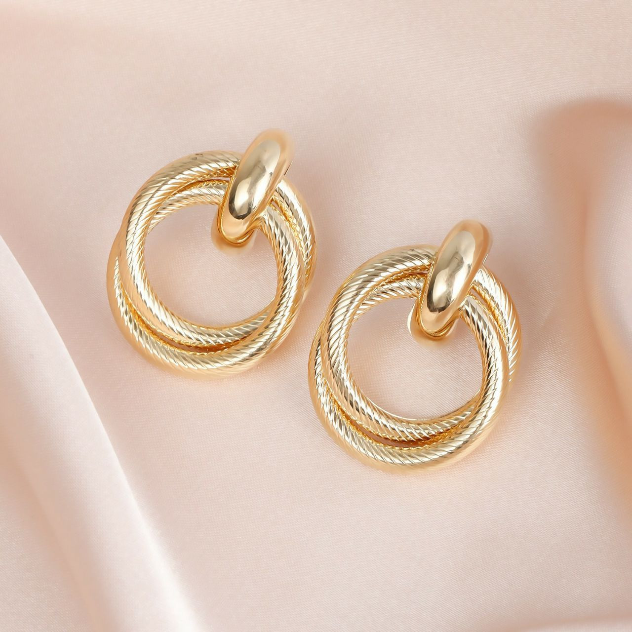 Boucles d'oreilles légers de luxe légers simples, boucles d'oreilles creuses tempérament cercle d'enroulement multicouche en or, glamour luxueux, uniques, tendance, élégantes