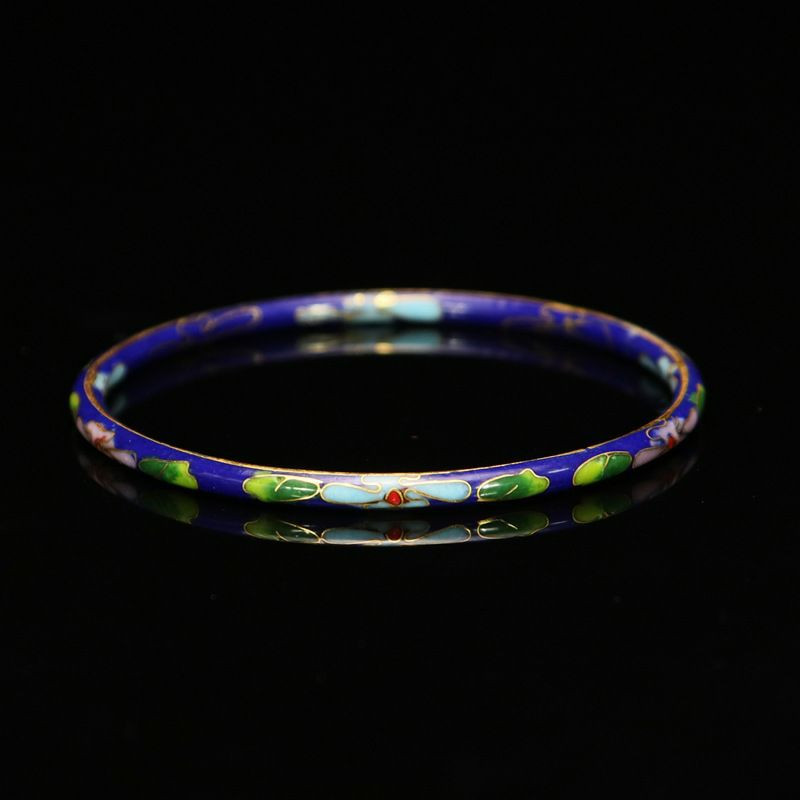 Lot de 7 Bracelets floraux fins chinois cloisonnés, bijoux de style ethnique en émail fait à la main, manchette creuse, (4 pouces/62 mm de diamètre)