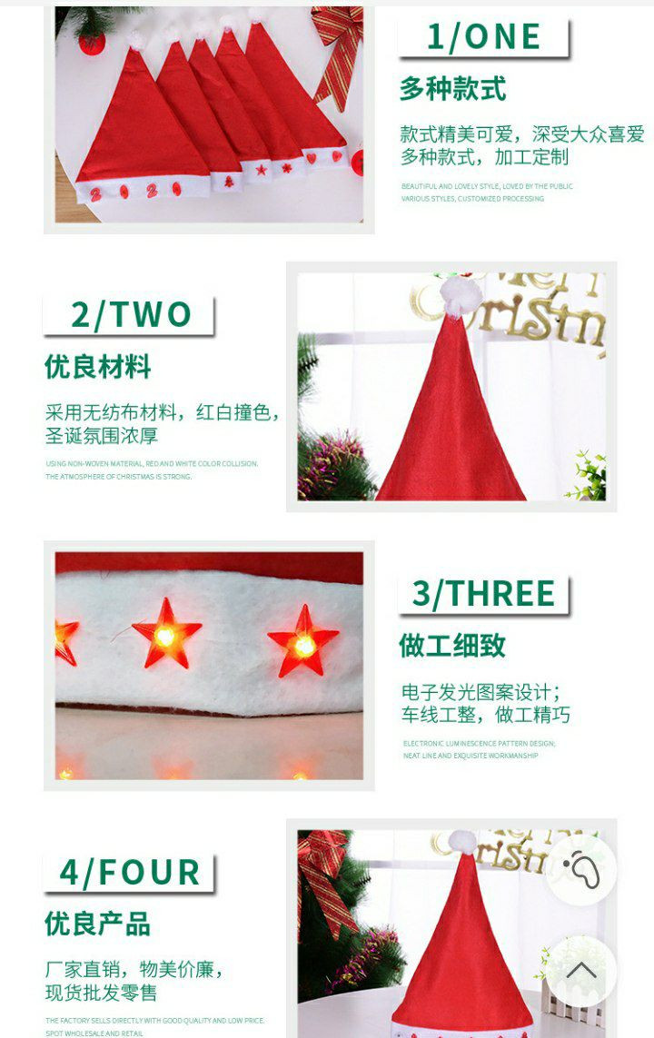 Bonnet de Noël ou de père Noel LED cinq étoiles avec des lumières chapeaux de Noël non tissés