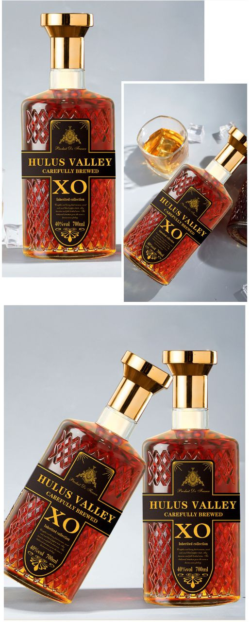 Bouteilles de cognac XO Hulusi Valley, une boisson alcoolisée.