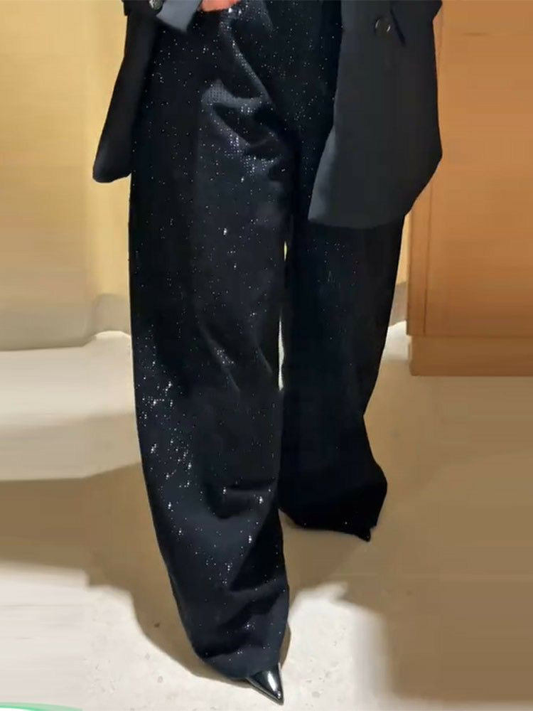 Nouveau pantalon jean ballon large noir scintillant avec des paillettes tendance de qualité porté souvent avec un blazer noir pour femmes, pour personnalité à la mode polyvalent