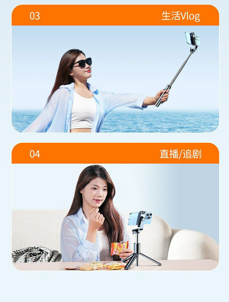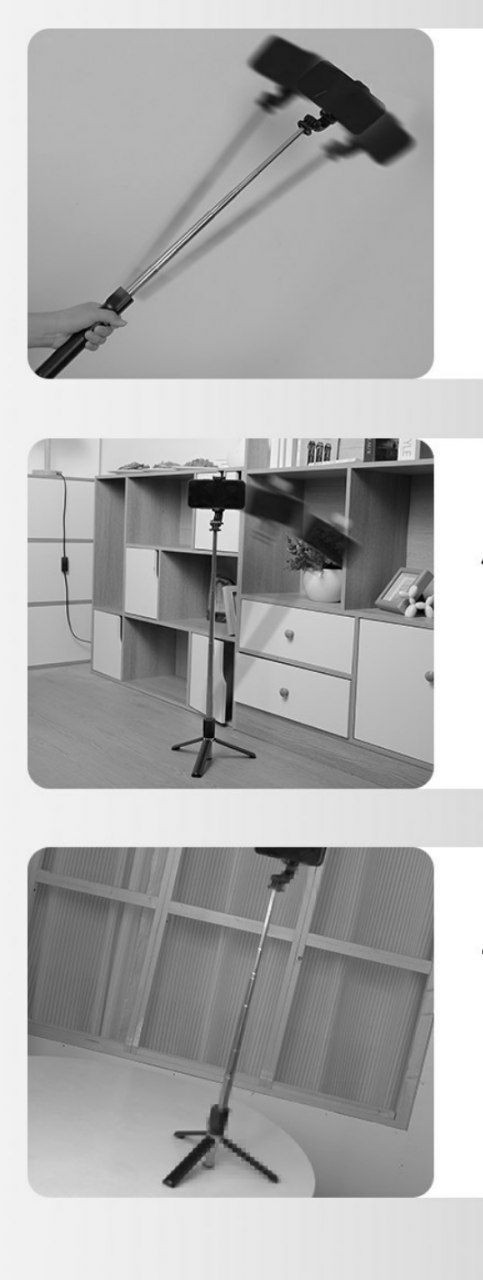 Peut être utilisé comme une perche à selfie et un trépied.