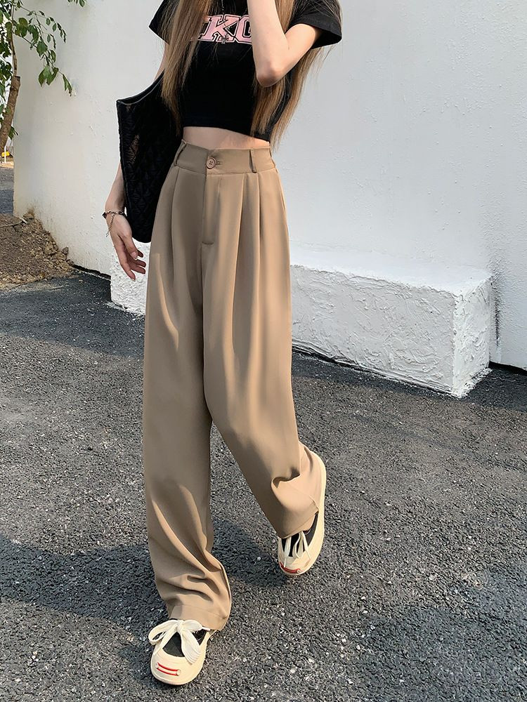Pantalons élégant de costume  avec taille élastique, pantalons décontractés slim, pantalons larges amples d'été, pantalons drapés taille haute