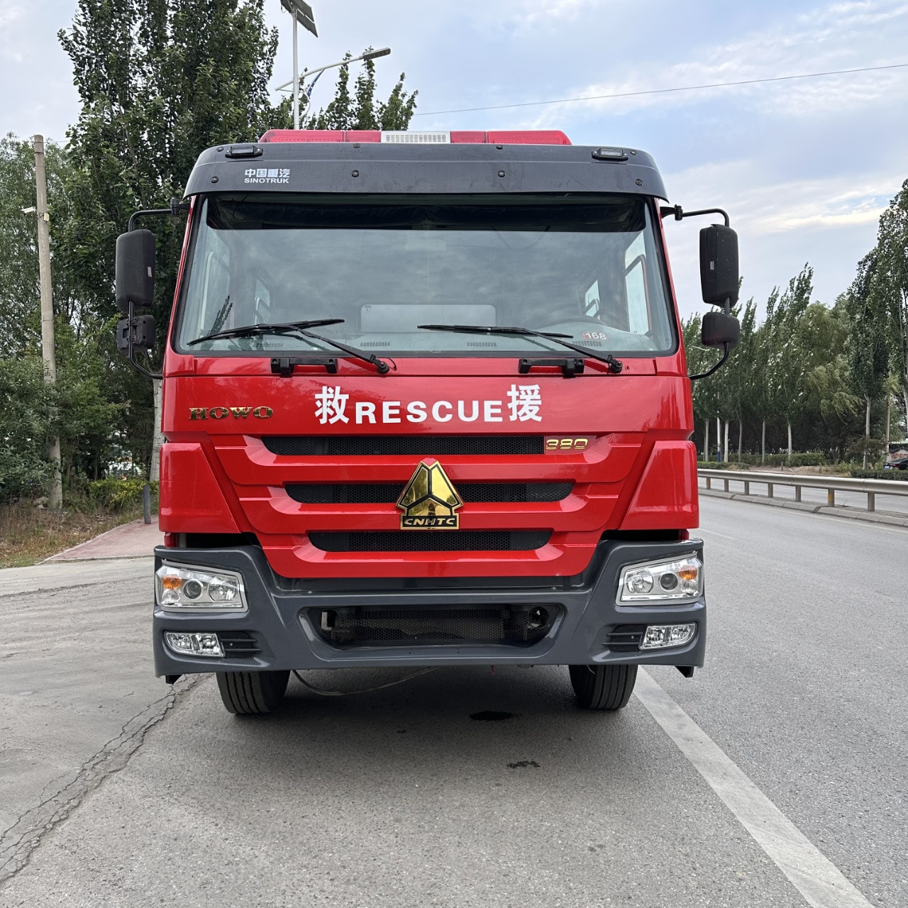 d'une boîte de vitesses rapide à 10 rapports (vitesses haute et basse), d'une direction assistée hydraulique, de freins à air (ABS), de pneus à rayons d'acier 1200/20, de feux de signalisation 24 V conformes aux normes nationales, d'une pompe à incendie Shanghai Graman (débit de 60 l/s) et d'un canon à eau Graman (débit de 60 l/s, portée de 70 m).