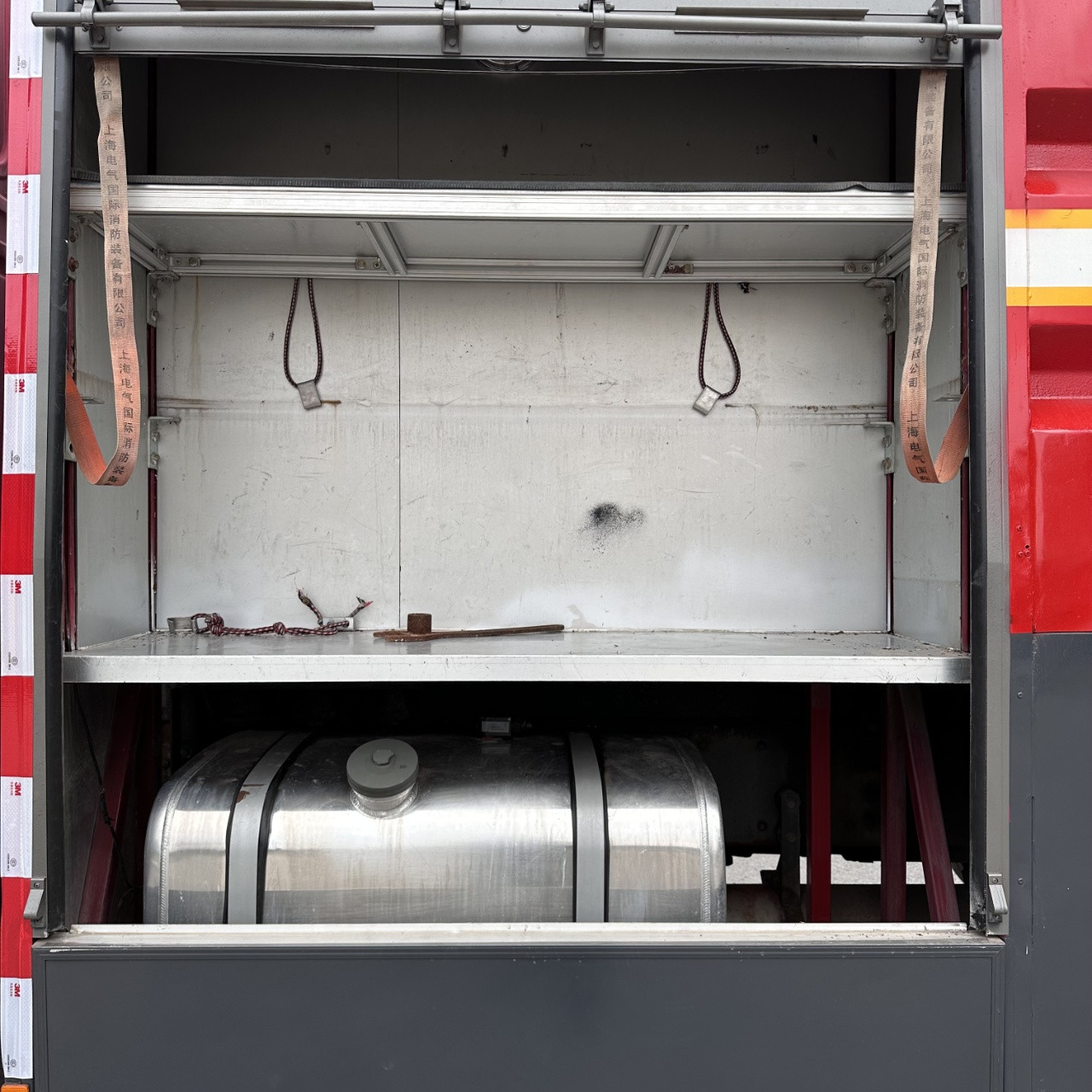 Il est équipé d'une cabine à double rangée (2+4 places, hayon élévateur hydraulique), d'une citerne d'une capacité de 16 tonnes,