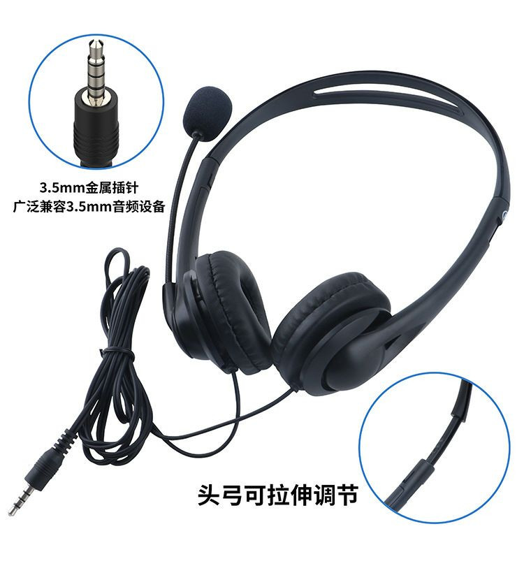 Casque filaire avec microphone intégré, conçu pour une utilisation informatique.
