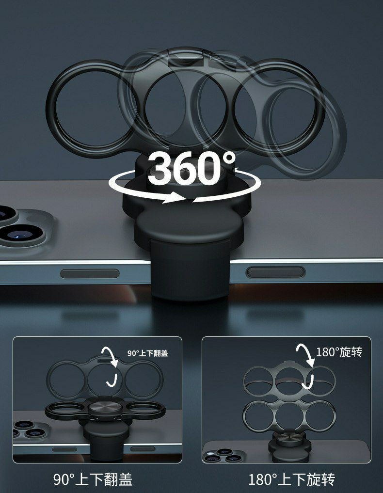 Support pour téléphone portable à double anneau et à trois doigts, anneau magique rotatif pliable, support paresseux, type de boucle de bureau