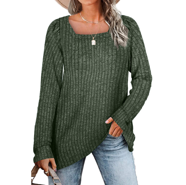 Hauts pour femmes automne et hiver nouveaux produits col carré bande de fosse brossé décontracté version longue T-shirt européen et américain femmes
