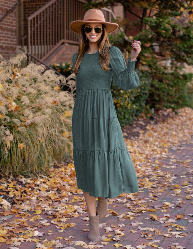 Automne et hiver nouveaux vêtements pour femmes souhaitent rétro français col rond manches lanterne nouvelle robe